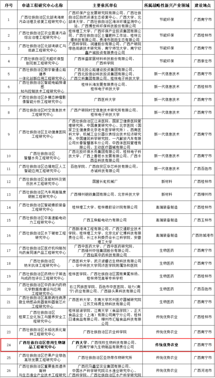 7月28日,广西壮族自治区发展和改革委员会公布了2022年度广西壮族自治区工程研究中心认定名单,全区共26个工程研究中心获批建设,其中有公司牵头与广西悦牧生物科技有限公司和广西南宁神九生物制品有限责任公司联合申报的“广西壮族自治区兽用生物制品工程研究中心”。这是公司首个获批建设的工程研究中心。