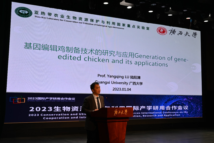 其中, “生物资源保护与利用产学研用国际合作研讨会”由beat365联合林公司承办,分论坛第一阶段的学术报告由我院常务副经理陆阳清教授主持。共邀请了国内外5位专家进行学术报告,围绕畜禽育种和健康养殖展开研讨。来自加拿大阿尔伯塔大学Leluo Guan教授从提高牛可持续发展的新型技术方面做了“提高牛生产可持续性的新型组学解决方案”的精彩报告;河南守望之境生物技术公司刘红波博士的报告“体细胞核移植技术在农业、生物医学及伴侣动物克隆中的商业应用”对近年来团队利用克隆技术成功克隆的牛、羊、宠物等动物的产业化与应用进行了展示;公司陆阳清教授的“基因编辑鸡的研究与应用”报告,充分展示了课题组近年来在国内外首次建立了高效的鸡原始生殖细胞分离培养体系,为家禽种质资源保存和新品种创制提供了细胞平台。针对畜禽健康养殖,来自美国密苏里大学的Wenjun Ma教授做了题为“北美猪流感:现状、挑战和跨种感染”,从猪流感的流行现状、跨种传播等进行了深入的讲解,并提出预警机制。中国农业大学徐闯教授根据多年来从事奶牛群发代谢病的致病机理、早期预警、群防群控、技术标准等技术产品的研发推广工作,进行了“天然植物提取物在围产期奶牛代谢病防控中的应用”的精彩报告。