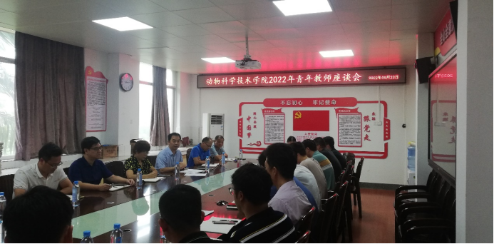 2022年9月23日下午,在公司302会议室召开青年教师座谈会,会议由公司党委副书记沙建主持,公司党委书记顾慕娴、常务副经理陆阳清、副经理宁鹏飞、韦祖樟、经理助理兼动科系主任蒋钦杨、动医系主任陈樱及18位青年教师参加了本次会议。