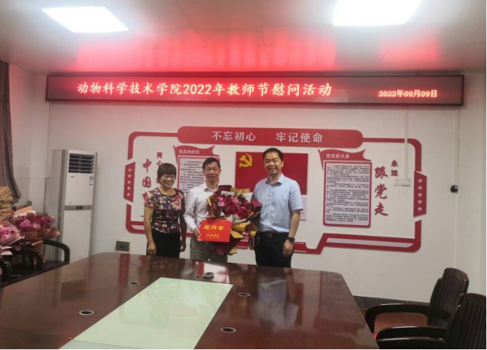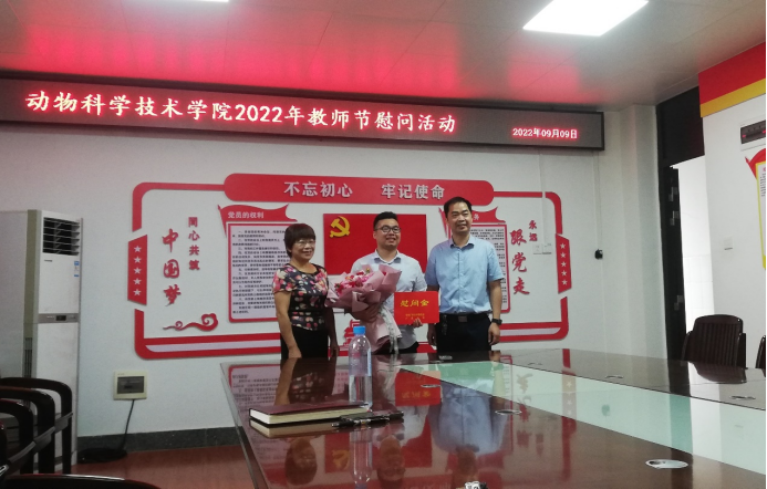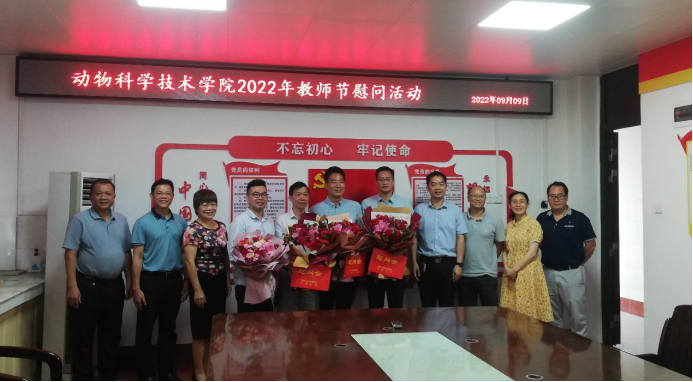 2022年9月9日上午,公司在公司302会议室举行2022年教师节慰问活动,公司党委书记顾慕娴、常务副经理陆阳清慰问了公司教职工代表胡传活、蒋钦杨、李辉和苏接瑜,向他们送上鲜花和慰问金,并通过他们向全院教师致以节日祝贺问候和美好祝愿。副经理宁鹏飞、何家康和韦祖樟及公司各部门代表参加了本次慰问活动。(图/罗敏芳 文/李爱友)