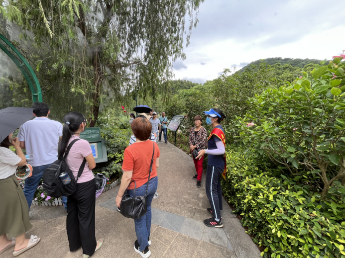 “莫奈花园”听讲解员作水生花卉植物的科普讲解。同时还在壮乡阁开展了“巾帼心向党