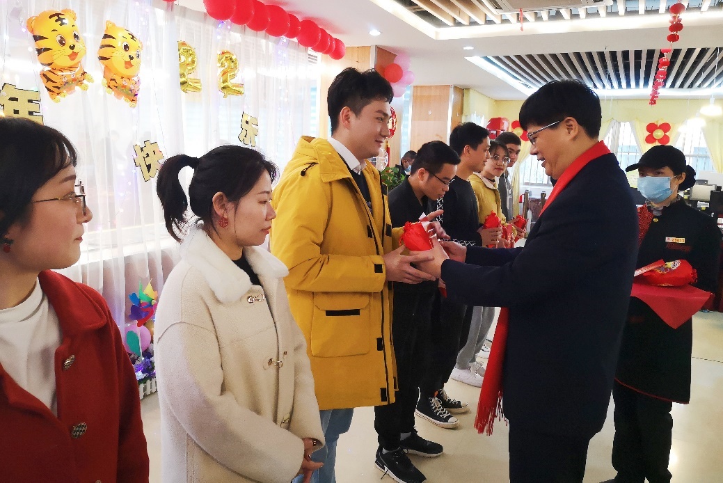 罗廷荣副董事长代表公司向留校过年的同学们致以新春的问候,表达了殷切希望和美好祝福。他给大家送上“红包”和“福袋”,并为近两天过生日的2名同学庆生,与大家同唱生日歌、同切生日蛋糕,在一片欢声笑语和祝福声中将年夜饭推向高潮。