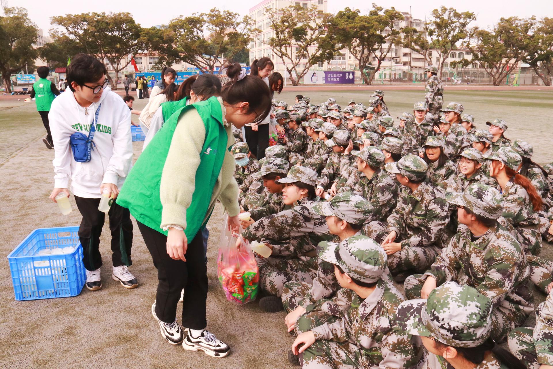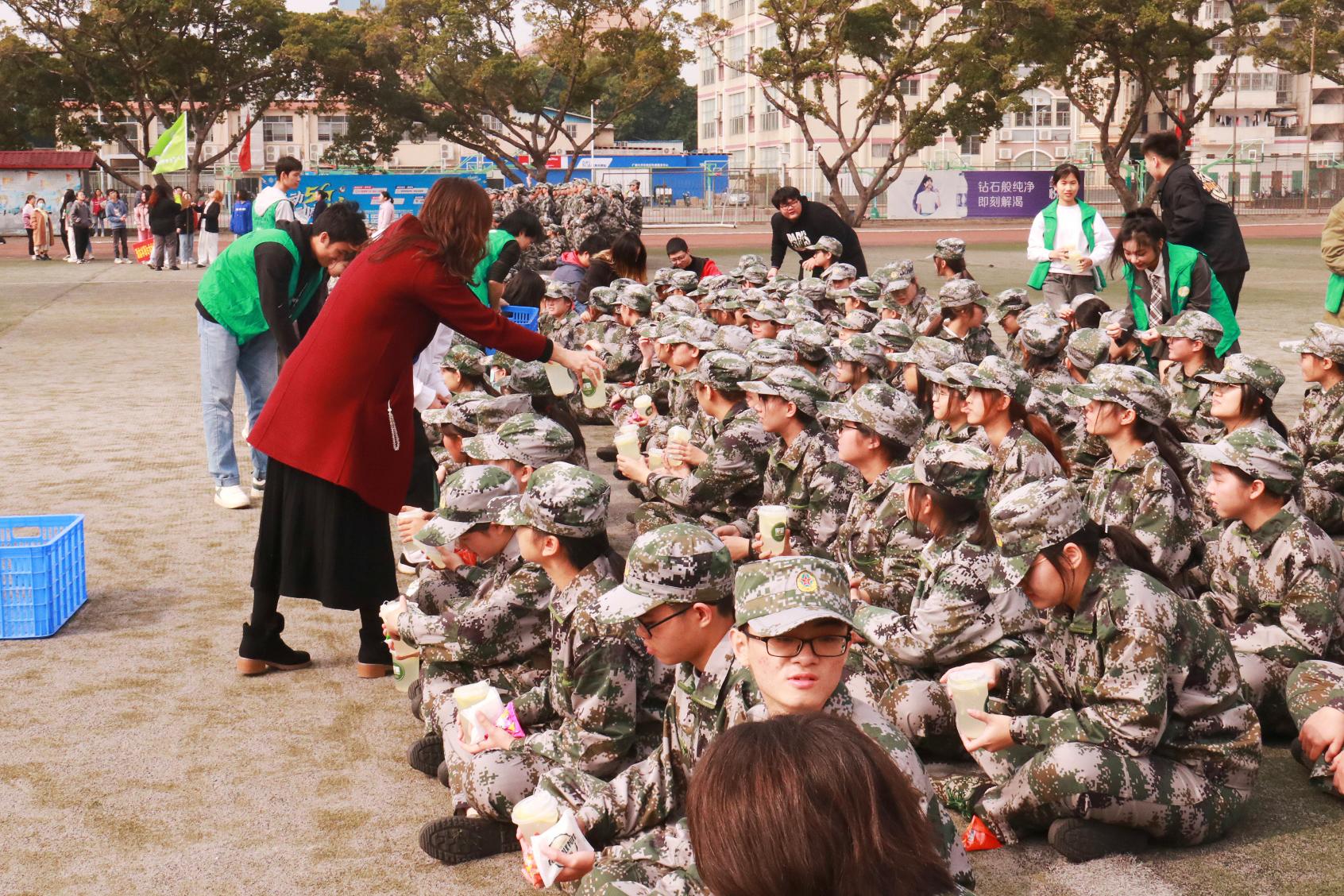 团学组织员工骨干、班主任助理、班级指导员、员工党员一同向2021级军训参训员工和带训教官赠送了慰问品,使同学们深深感受到全院师生对大家的关心和爱护。