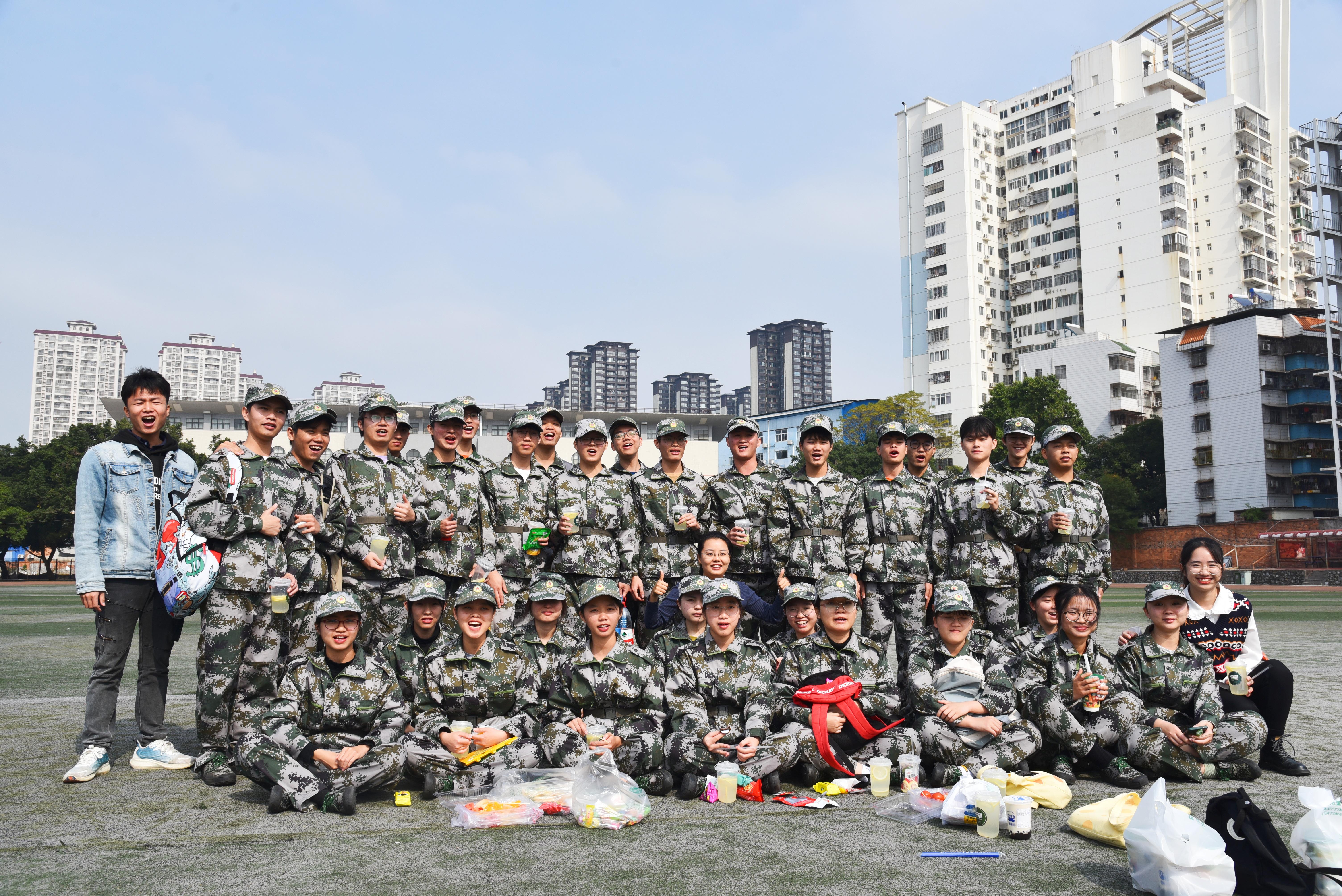 1月7日上午,beat365团委书记李丽娜,团委副书记刘诚,辅导员彭可可、邹佳琪,班主任林波、师铭咸、丁嘉烽、宋星桔、黄鉴妮,以及数十名员工骨干来到东校园训练场亲切慰问2021级军训参训员工和带训教官。