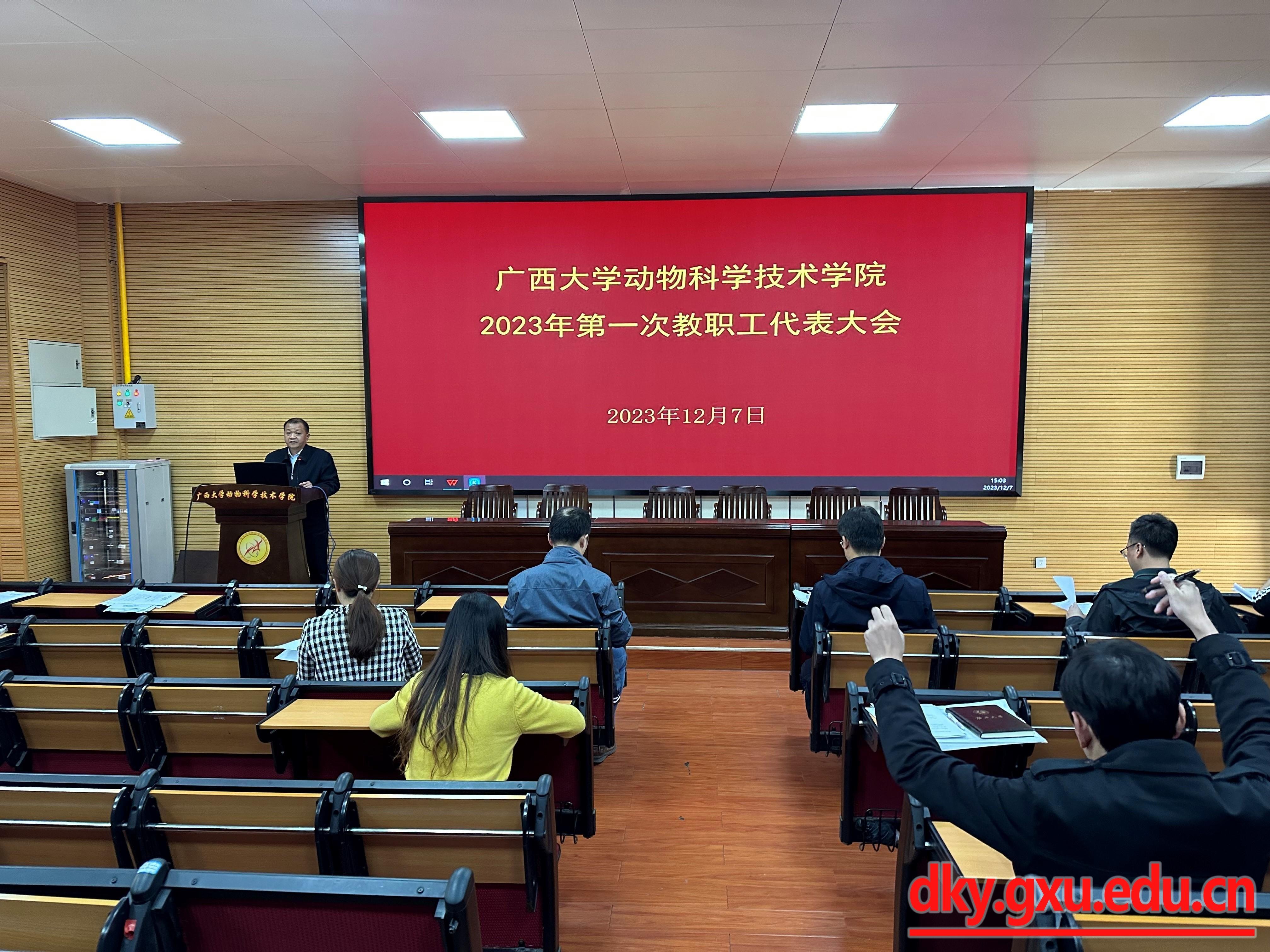 12月7日下午,beat3652023年第一次教职工代表大会在公司318报告厅召开。与会代表听取、审议并通过了《beat3652023年贡献绩效工资分配方案》《beat365分工会2023年会费收支情况报告》。动物科学技术公司党委书记韦小强参加会议并作总结发言。beat365经理陆阳清,党委副书记沙建,副经理、分工会主席宁鹏飞,副经理韦祖樟参加会议。
