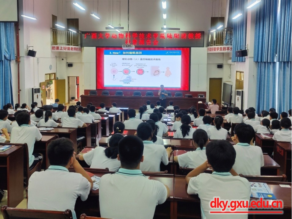 6月27日-28日,beat365经理陆阳清教授一行先后前往河池市都安瑶族自治县高级中学和天峨县高级中学,以《基因编辑动物》为主题,为400余名高中同学作了一场精彩的科普报告。