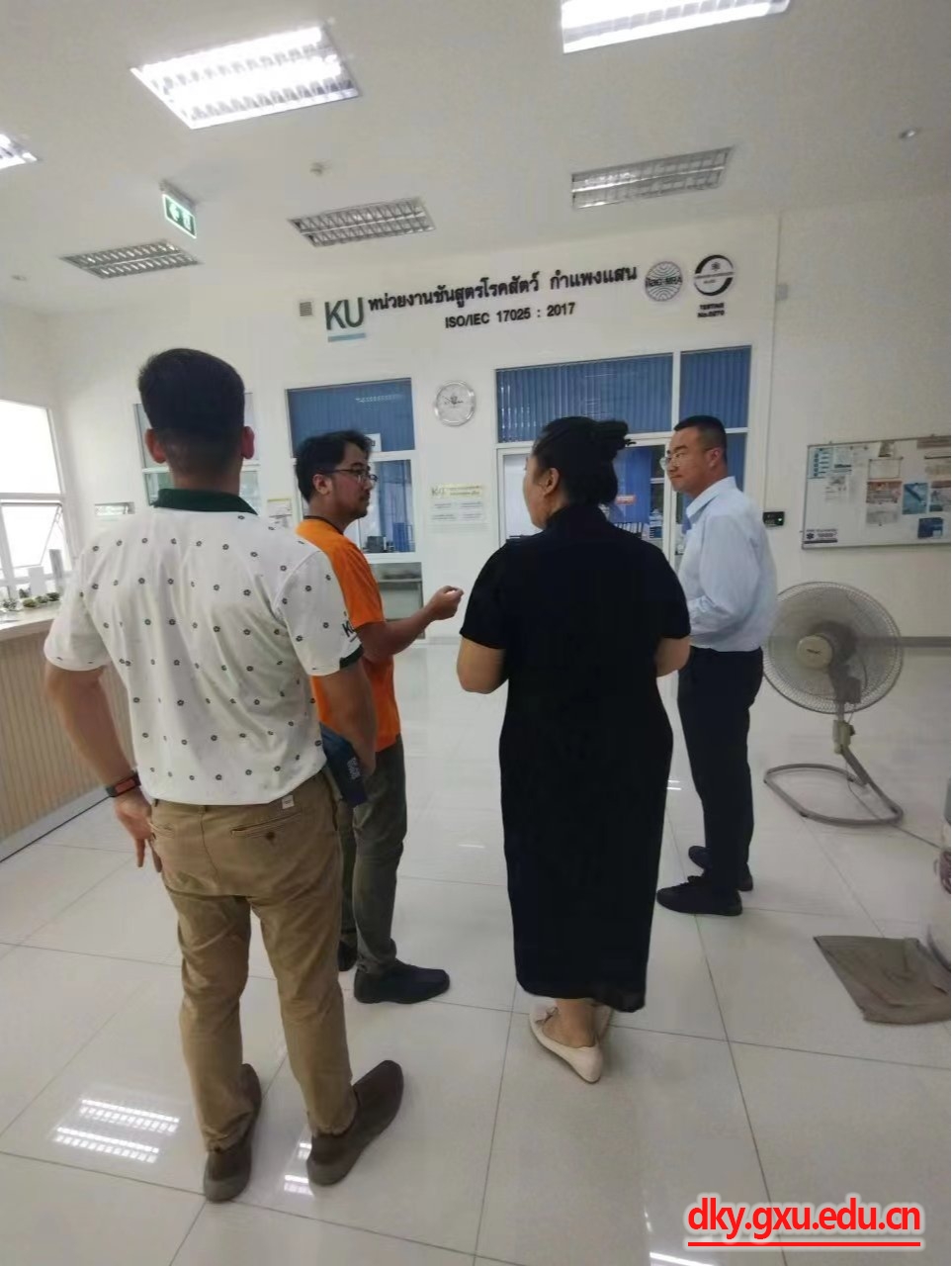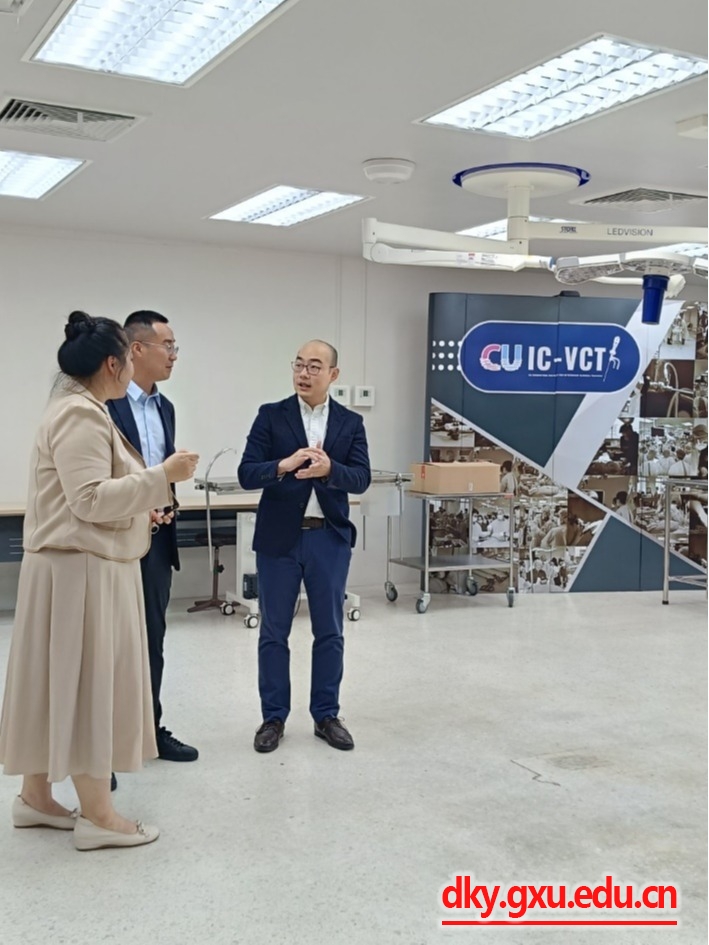 两位老师陪同三位同学到达朱拉隆功大学,在朱拉隆功大学AoiWaraporn女士及宋卡王子大学小动物肿瘤科KanunKun博士的指引下参与朱拉隆功大学兽医公司工作人员开展的入职前参观及讲解。