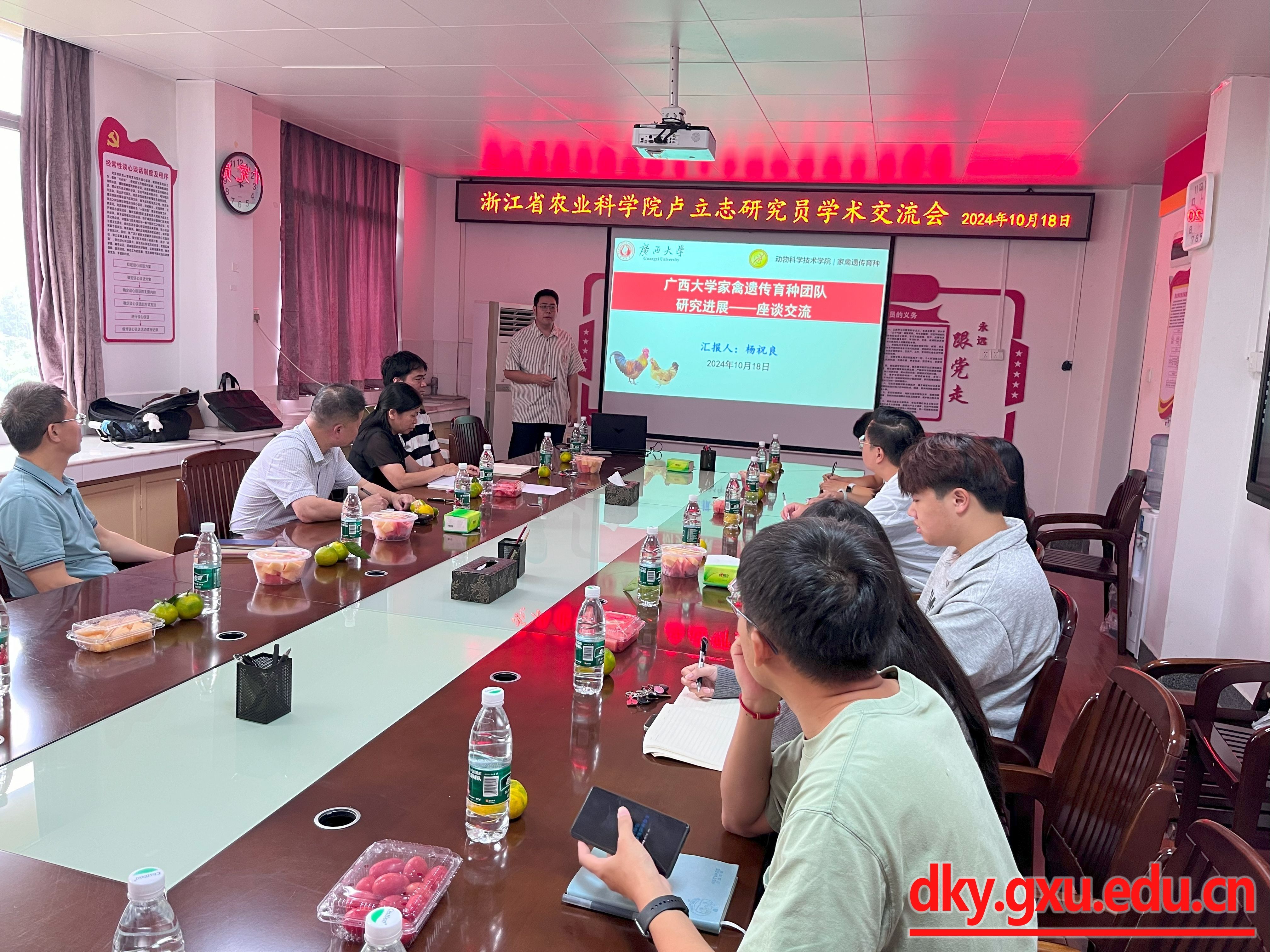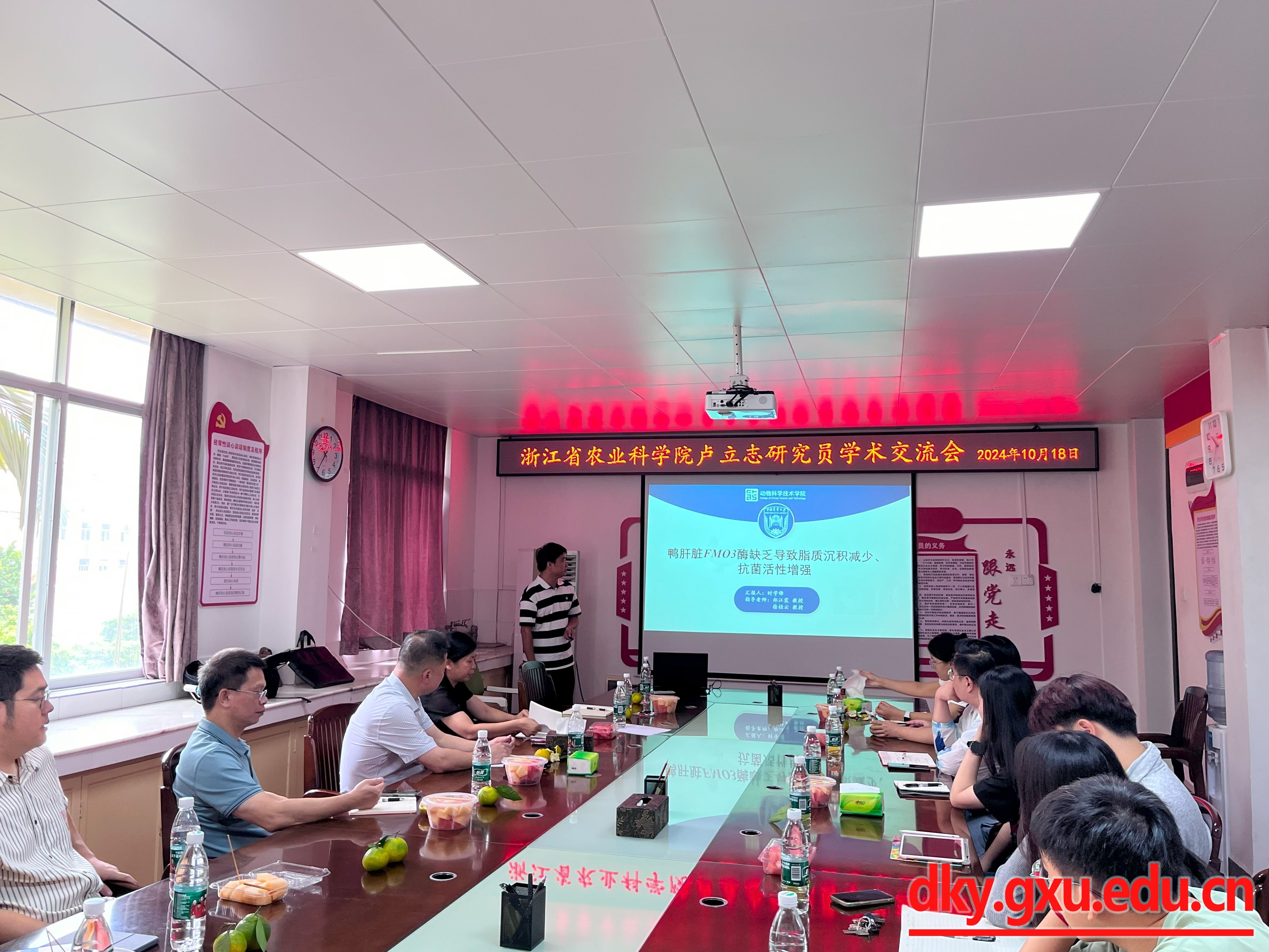 在听取完相关汇报后,卢立志研究员对beat365官方网站家禽遗传育种团队取得的显著成绩给予了高度评价,强调这些成就离不开团队每位成员的辛勤付出与团结协作。随后,他从多个维度深入介绍了浙江省农科院畜牧兽医研究所家禽育种与养殖团队的情况。最后,他指出广西作为全国知名的水禽养殖大省,具有巨大的发展潜力和广阔的研究空间,beat365官方网站作为区内顶尖高等学府,肩负着推动水禽产业技术革新与产业升级的重要使命。