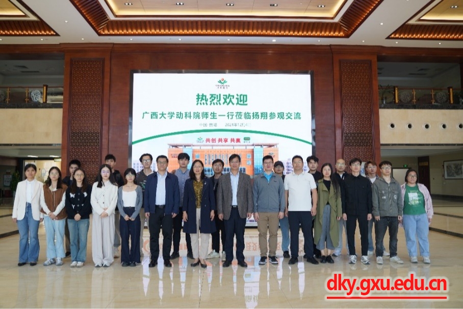 为进一步加强校企合作交流,实现校企优势互补与资源共享,推动产教研融合发展,开拓更多就业岗位和机会,12月4日,动物科学技术公司党委书记韦小强,党委副书记沙建,动物医学专业教师尹业师,辅导员邹佳琪、陆维鸿及公司硕博研究生代表等20余人前往广西扬翔股份有限公司参观交流并看望员工。广西扬翔股份有限公司创始股东、人力资源中心副总监覃丽珍等陪同参观和座谈交流。
