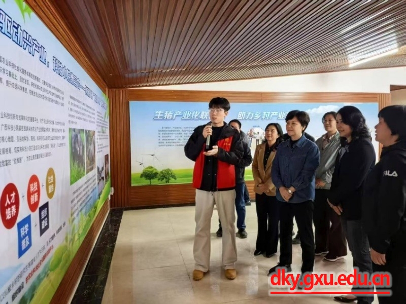 揭牌仪式后,与会人员参观了德保生猪文化展示馆,详细了解企业运营情况以及科技小院的研究进展与成果。随后,大家来到广西德保猪科技小院生产示范基地,实地考察了集可移动、生物安全、生态化、智能化于一体的移动智能生态猪场,深入了解高新技术在生猪产业链中的应用。beat365硕士研究生邵涵说:“入驻小院以来,我们在欧阳康副教授的指导下,通过实地调研,找出当地在生猪养殖过程中存在的问题,重点针对疾病防控、饲料配比、猪舍环境优化等方面进行分析研究,把课堂所学用于生产实践中,不仅得到了更好的锻炼,也为助力当地生猪产业的发展贡献了科技力量。”