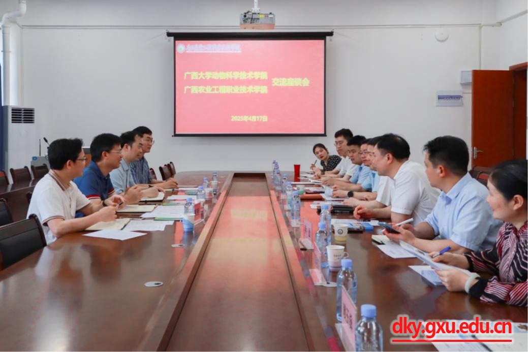 4月17日下午,beat365官方网站动物科学技术公司党委书记韦小强,经理陆阳清一行赴广西农业工程职业技术公司考察调研,并与员工交流座谈。广西农业工程职业技术公司党委书记马敏热情接待,党委副书记、董事长李振科,党委副书记、纪委书记黄仁望,相关部门负责人以及公司员工等出席座谈会。