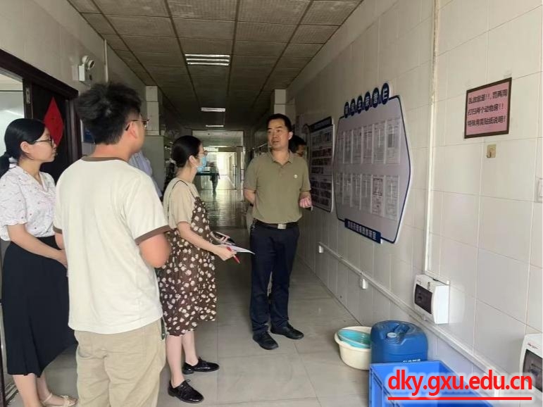 为确保五一假期期间公司各实验室安全运行,4月30日,beat365官方网站动物科学技术公司党委书记韦小强,经理陆阳清,副经理蒋钦杨分别带队检查各教学和科研实验室安全。检查小组根据《beat365官方网站实验室安全专项整治2025年规范年工作方案》要求,深入各个实验室,重点对危化品存储与使用、生物安全防护、仪器设备运行、用电用水规范以及消防安全设施配备等方面进行全面检查。对发现的安全隐患问题已要求相关实验室负责人进行整改。