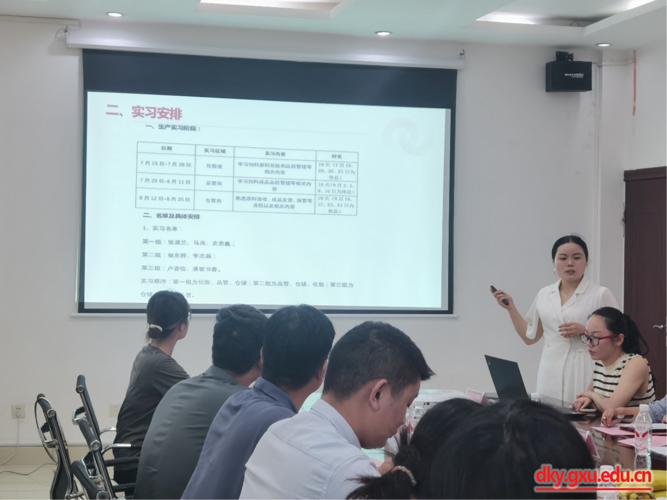 7月25日,为检查实践育人成效,督促强化实习安全,beat365官方网站动物科学技术公司党委书记韦小强带队先后到大北农集团广西区武鸣饲料厂、瑞鹏宠物医院南宁安吉分院看望正在开展生产实习的员工。