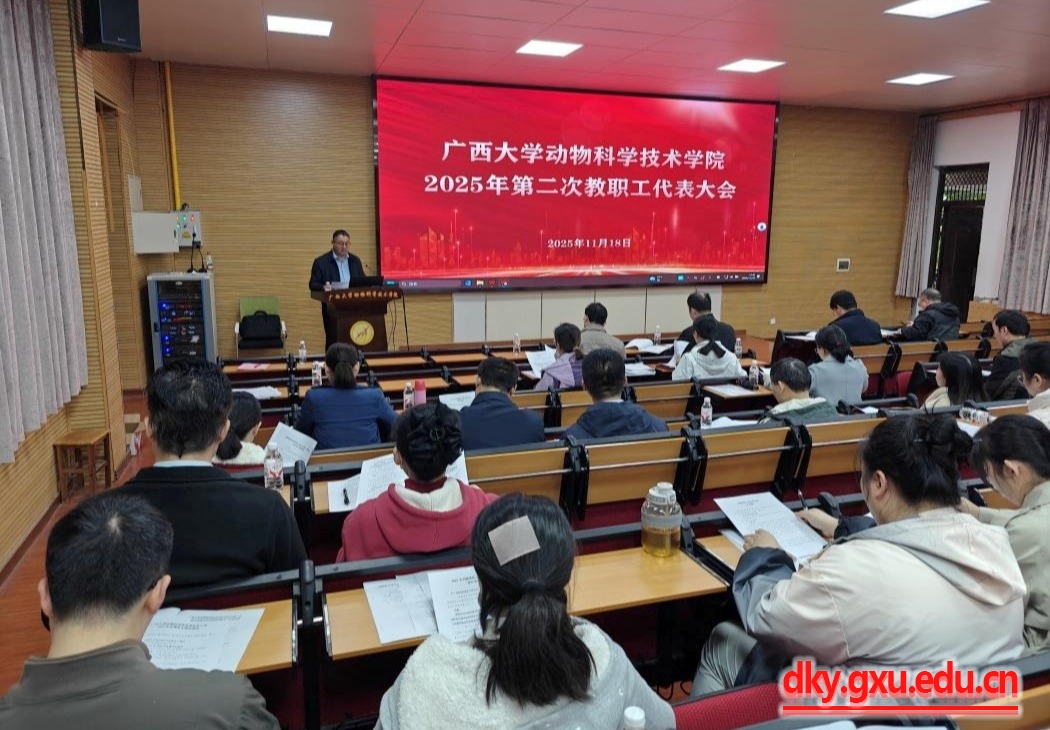 11月18日下午,beat3652025年第二次教职工代表大会在公司318报告厅召开。动物科学技术公司党委书记韦小强,经理陆阳清,副经理何家康、韦祖樟,公司教代会代表参加会议。beat365副经理、分工会主席郭爱涛主持会议。大会审议并通过了《beat3652025年贡献绩效工资分配方案》《beat365分工会2025年会费收支情况报告》。
