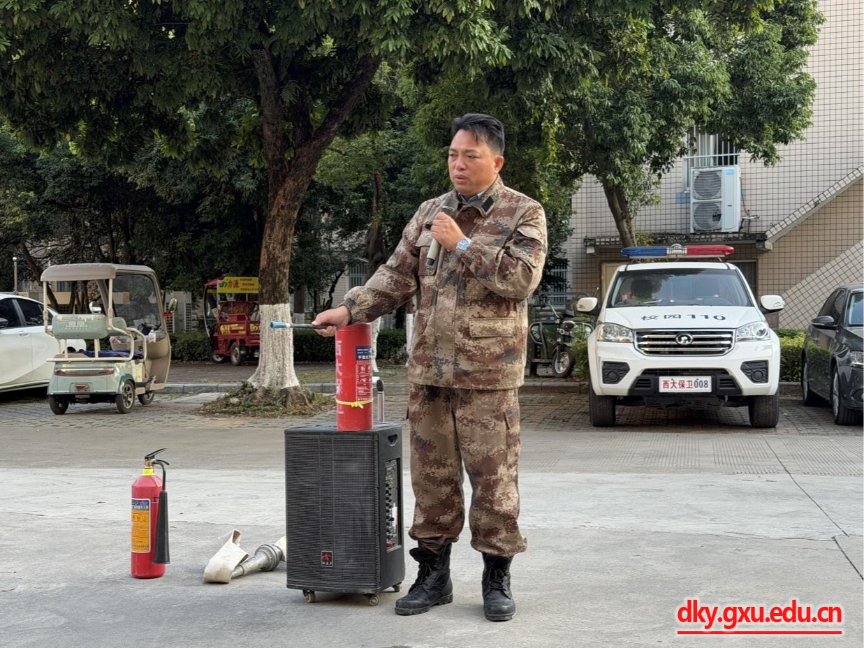 公司邀请保卫处黄光电同志结合实际案例,向同学们分析了校园火灾形成的原因和特点,并讲解了灭火器和消防水带等不同消防器材的使用方法和注意事项。