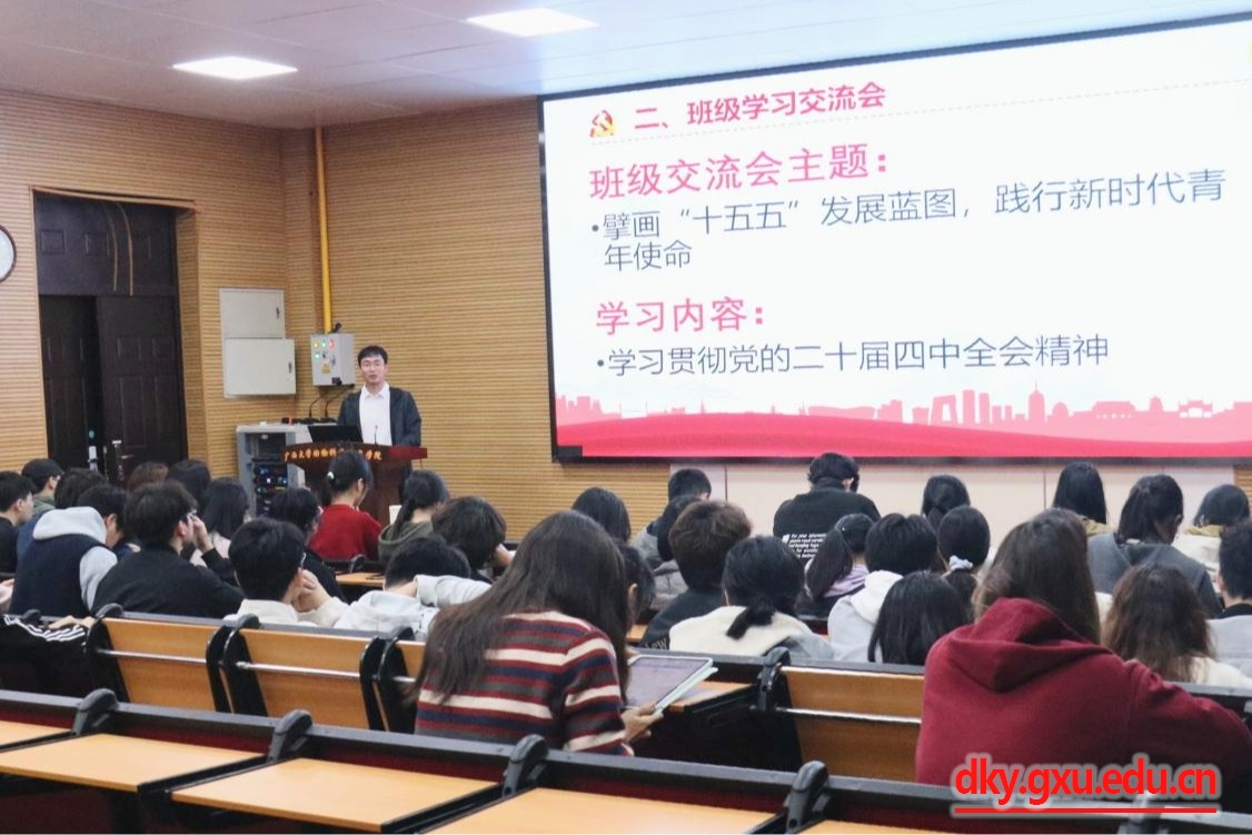 动物科学231班谭淑娜同学在分享中表示,党的二十届四中全会的召开,令人倍感振奋、深受鼓舞,我们要牢记强农兴农的时代使命,深耕专业知识,矢志攻克农业领域“卡脖子”关键技术,以青春之力助推乡村全面振兴,为以中国式现代化全面推进强国建设、民族复兴伟业注入澎湃动能。