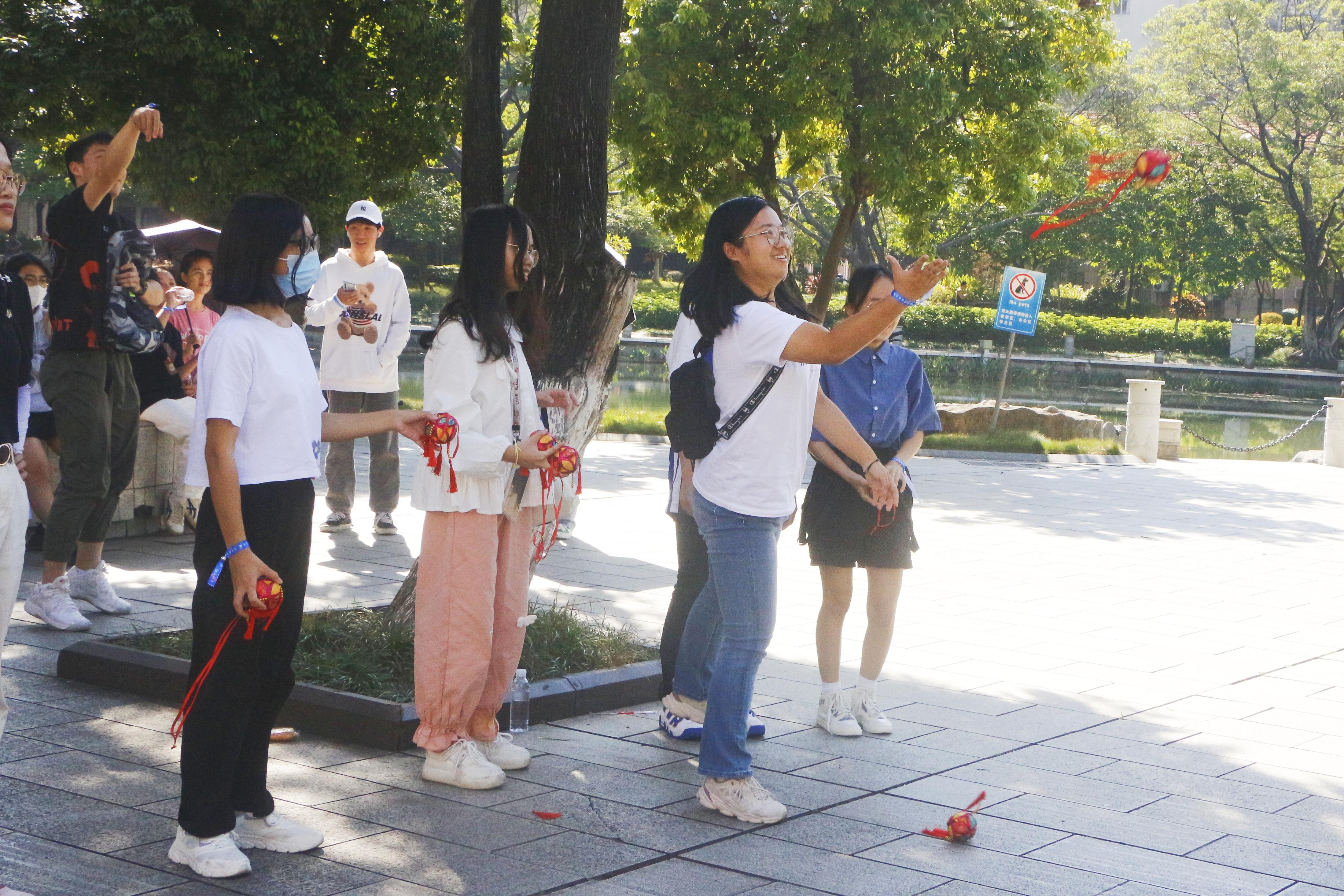 本次活动以游戏为载体,以运动为依托,分别在育才广场、大礼堂、汇学堂、图书馆、老员工活动中心、员工军纪念碑等校园标志性区域设置了6个游戏站点。beat3652022级本科生全员参与,随机分为20组,通过不同路径前往游戏站点,进行了“你的名字”、背篓接绣球、胯下传球、两人三足、夹乒乓球、接力长绳等寓教于乐的团队训练项目,使得大家既在轻松有趣的氛围里,以游戏的形式增进了彼此间了解和信任,又在充满挑战的环境中,以团队的方式感受到集体的力量和智慧。