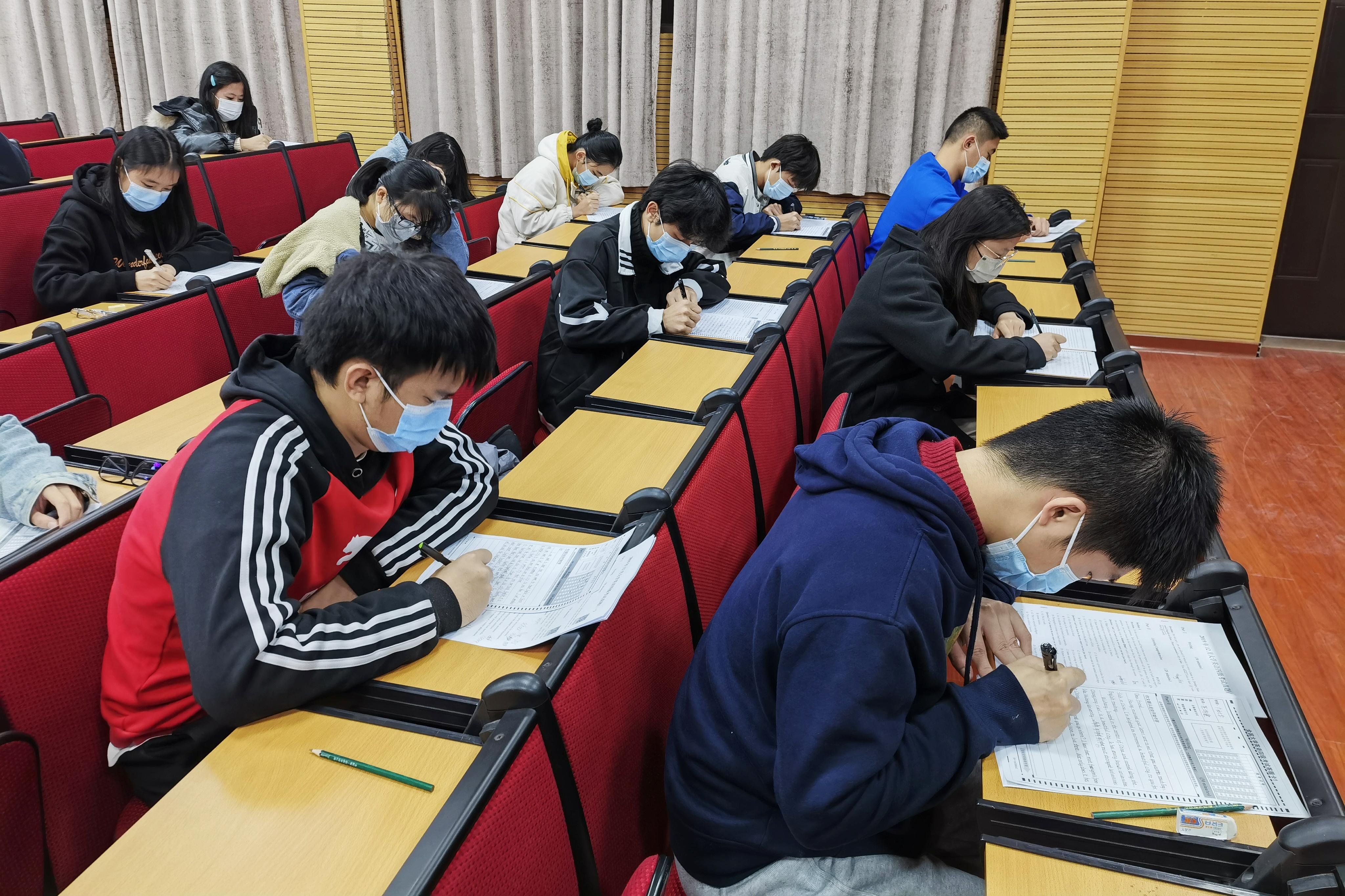 本次模拟考试严格按照大学英语四级考试的相关要求进行。考试开始前,工作人员有序分发试题册和答题卡。考试过程中,同学们聚精会神,认真答题,遵守考场规则,现场井然有序。听力部分使用音响播放。考试结束后,大家自觉安静离场。