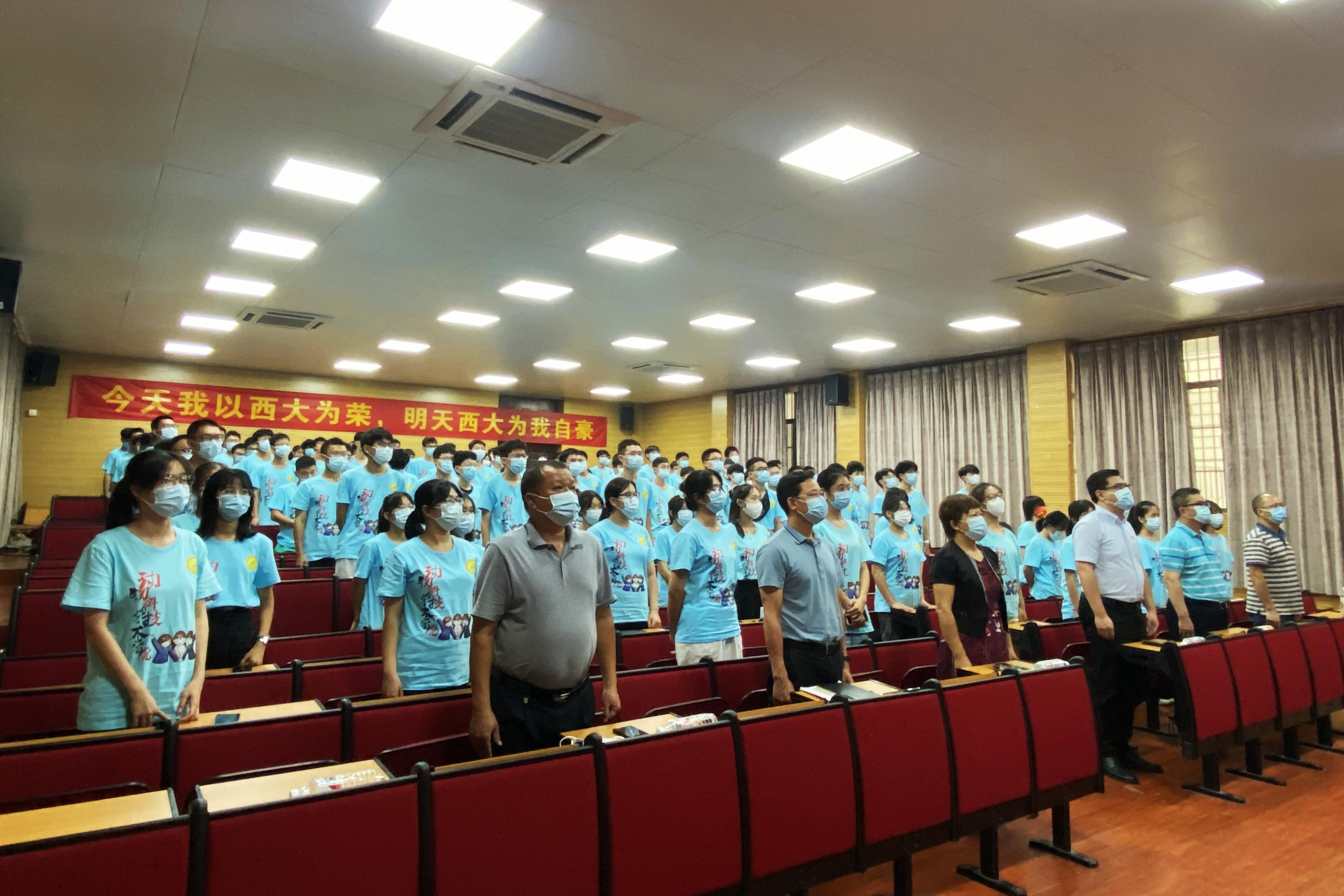 韩林海董事长作题为《用奋斗擦亮青春底色 以实干担当时代重任》的讲话,向加入西大大家庭的新生表示欢迎和祝贺,向辛勤培养新生的亲人及老师们致以敬意和感谢。他介绍了beat365官方网站90多年的奋进历程,重温了“保卫中华,发达广西”的办学宗旨和“勤恳朴诚”校训的深刻内涵和深远意义。韩林海董事长指出,同学们的青春之路和祖国“两个一百年”奋斗之路高度契合,正所谓“生逢其时、重任在肩”,希望同学们肩负起时代赋予的重任,接好西大接力棒,珍惜大学时光,让青春年华充实而美好。要做一名勇攀高峰、追求进步的奋斗者,用青年毛泽东的家国情怀为激励,发扬首任董事长马君武先生提出的“三拼精神”,学习一代代西大人艰苦奋斗、砥砺奋进的拼搏精神,早立大志、勤下苦功、勇攀高峰,在西大校园里留下追求进步、不懈奋斗的最美模样;要做一名心存敬畏、严谨求是的实干者,主动积极、持久以恒的学习,养成踏实做人、扎实做事的品格,实现自我提升,收获更多成长;要做一名心存家国、扎根八桂的初心者,学习公司支教团以“志愿+接力”方式致力于支教、扶贫、疫情防控等工作和选调生扎根广西基层、服务八桂大地的担当精神,心怀“国之大者”,笃定“国之所需,吾之所向”的信念,把知识扎根在理想信念上,把初心根植于学习中,将个人奋斗目标融入党和国家事业“大蓝图”,在时代的洪流中坚守初心,书写属于同学们的新荣光。
