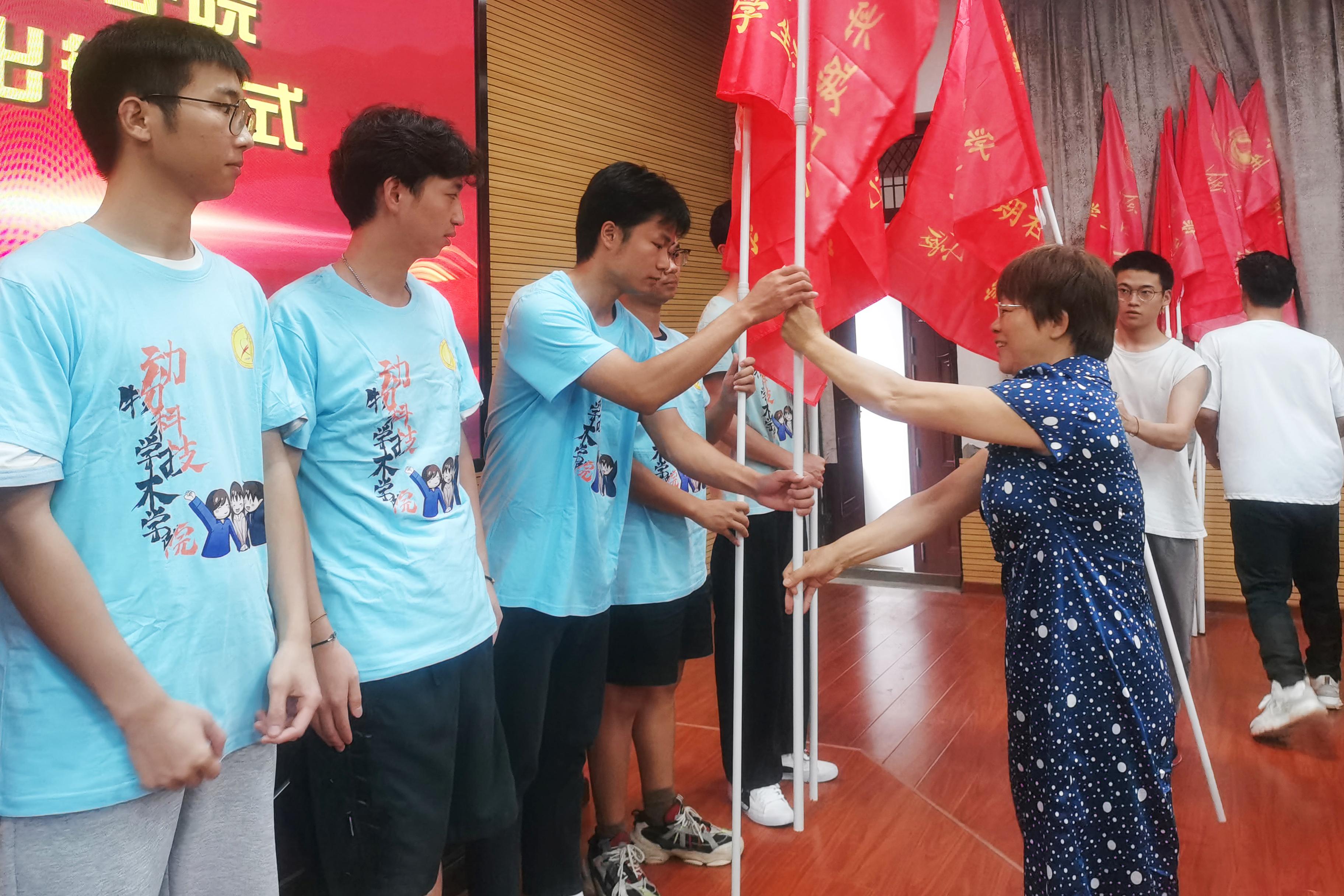随后,顾慕娴老师在仪式上讲话,并为各个社会实践团队授旗。她指出,近年来,公司社会实践活动结合学科专业优势,主动对接乡村振兴战略,为促进地方经济建设和社会发展作出了积极贡献,为公司、公司带来了良好的社会效应,希望各个社会实践团队要勇担使命,积极对接社会发展需要;要学以致用,切实增强服务社会本领;要精心组织,努力提升社会实践成效,并鼓励大家拥抱新时代,奋进新时代,以实现中华民族伟大复兴为己任,在社会实践活动中亮出动科学子最靓丽的青春底色。