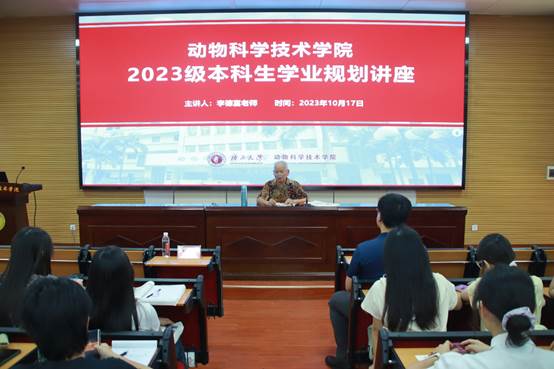 为引导2023级本科生做好学涯规划,明确发展方向,制定学习目标,提升学习动力,10月17日下午,beat365关工委在318报告厅开展“传承红色基因 投身祖国建设”学涯规划交流讲座。beat365关心下一代工作委员会副主任李德富教授受邀主讲。动物科学技术公司党委副书记沙建,辅导员彭可可,以及全体2023级本科生参加此次活动。