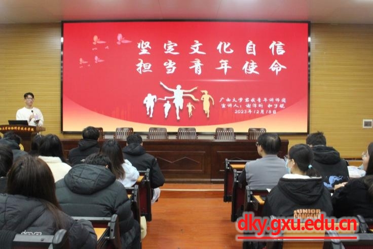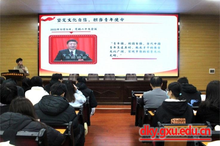 君武青年讲师团以“坚定文化自信,担当青年使命”为主题面向公司全体新任员工骨干开展宣讲。师团成员谢泽昕以短视频创作者李子柒带领螺蛳粉走向国际为例,号召员工干部坚定文化自信,用青年声音讲好中国故事。