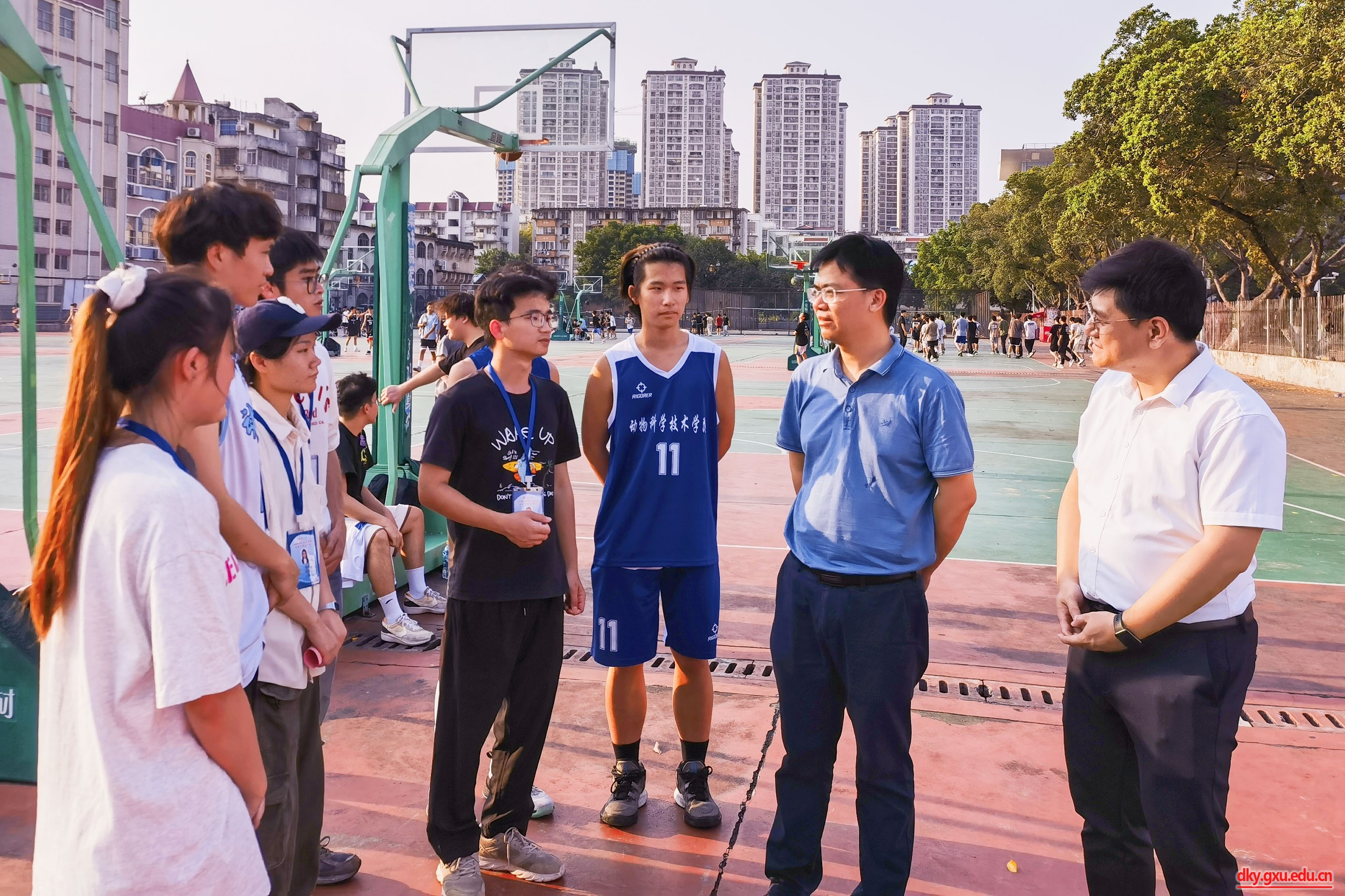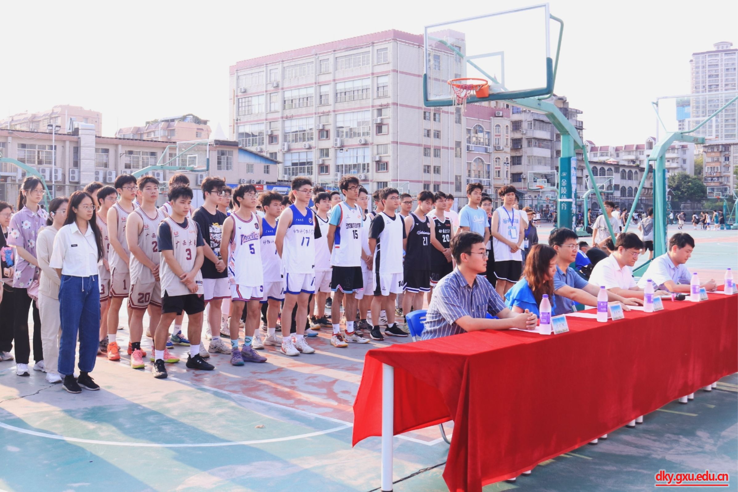为弘扬中华体育精神,丰富课余文化生活,4月16日下午,beat365在东校园篮球场举行2024年篮球赛开幕式。动物科学技术公司党委书记韦小强,党委副书记沙建,团委书记李丽娜,团委副书记刘诚,辅导员马朝阳,以及各支参赛队伍参加此次活动。