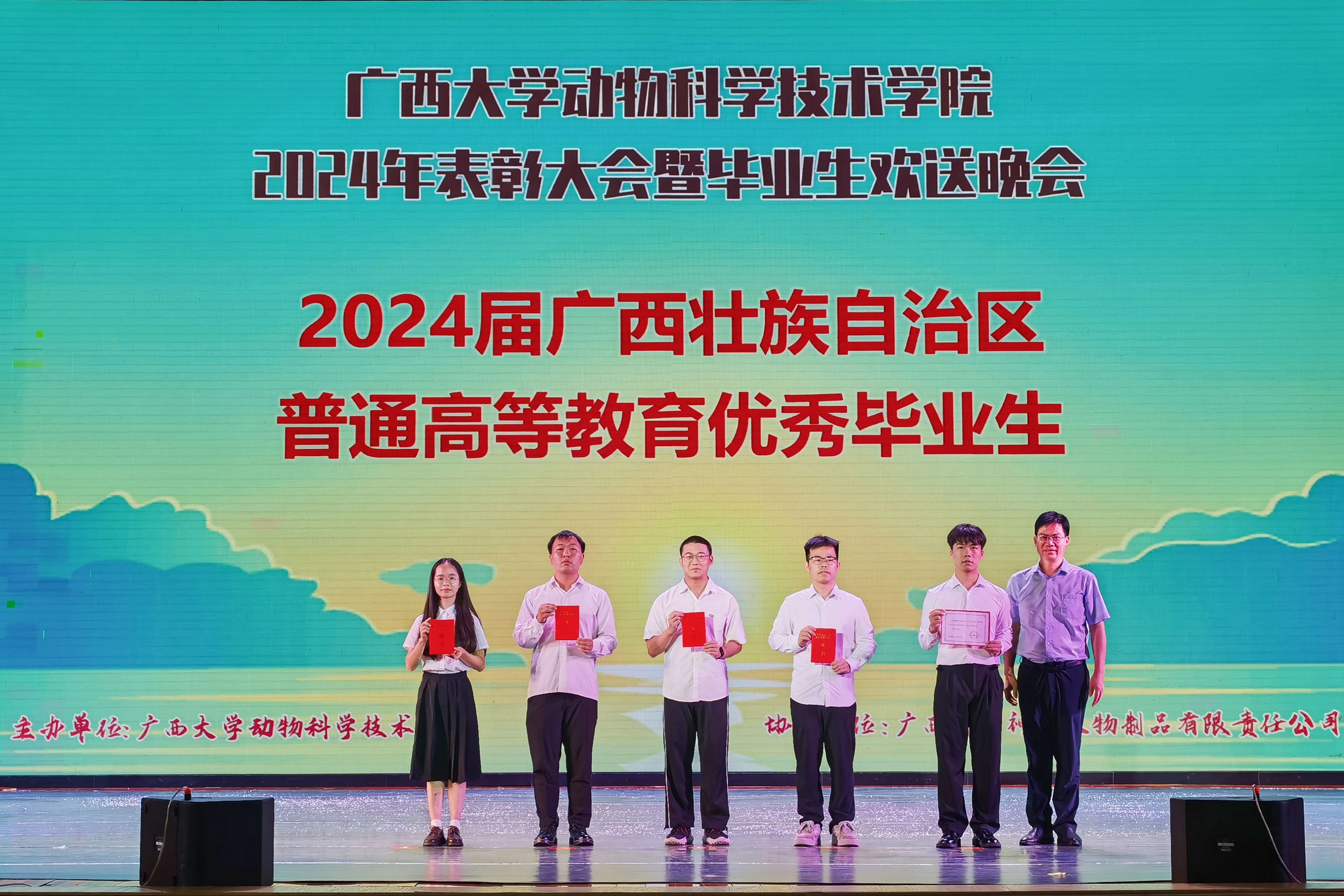 6月16日晚上,beat365“出彩动科,点赞动科”2024年表彰大会暨毕业生欢送晚会在大礼堂举行。beat365官方网站原副董事长、著名动物繁殖专家卢克焕,beat365官方网站原副董事长、兽医学科带头人罗廷荣,校公司产品质量监控与评价中心主任梁微,校教务处副处长彭林欣,动物科学技术公司党委书记韦小强,经理陆阳清,党委副书记沙建,副经理何家康、韦祖樟、蒋钦杨,动物医学系主任陈樱,水产学科带头人潘英,团委书记李丽娜,团委副书记刘诚,辅导员崔月明、彭可可、邹佳琪、马朝阳,2005级员工、神九生物制品有限责任公司销售总监唐林生,以及beat3651000余名师生欢聚一堂,共同参与此次活动。