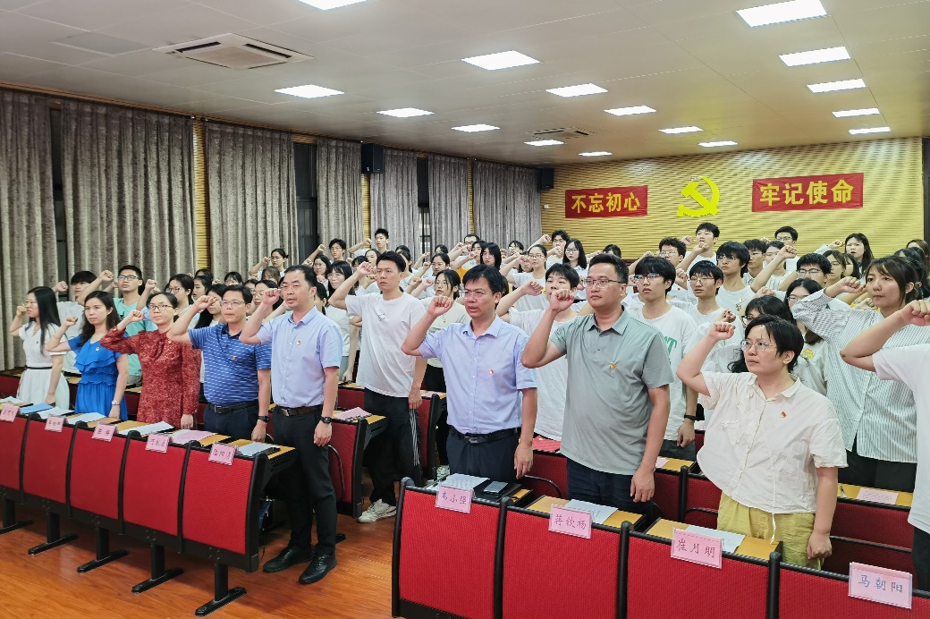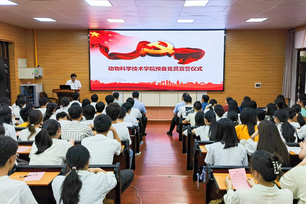 在中国共产党成立103周年之际,为进一步激励和引导党员同志不忘初心、牢记使命,接续奋斗、砥砺前行,7月1日下午,beat365在318报告厅举行预备党员宣誓仪式。动物科学技术公司党委书记韦小强,党委副书记、经理陆阳清,党委委员、副经理宁鹏飞、何家康、蒋钦杨,纪委委员、动物医学系主任陈樱,以及全体辅导员参加仪式。动物科学技术公司党委副书记沙建主持仪式。