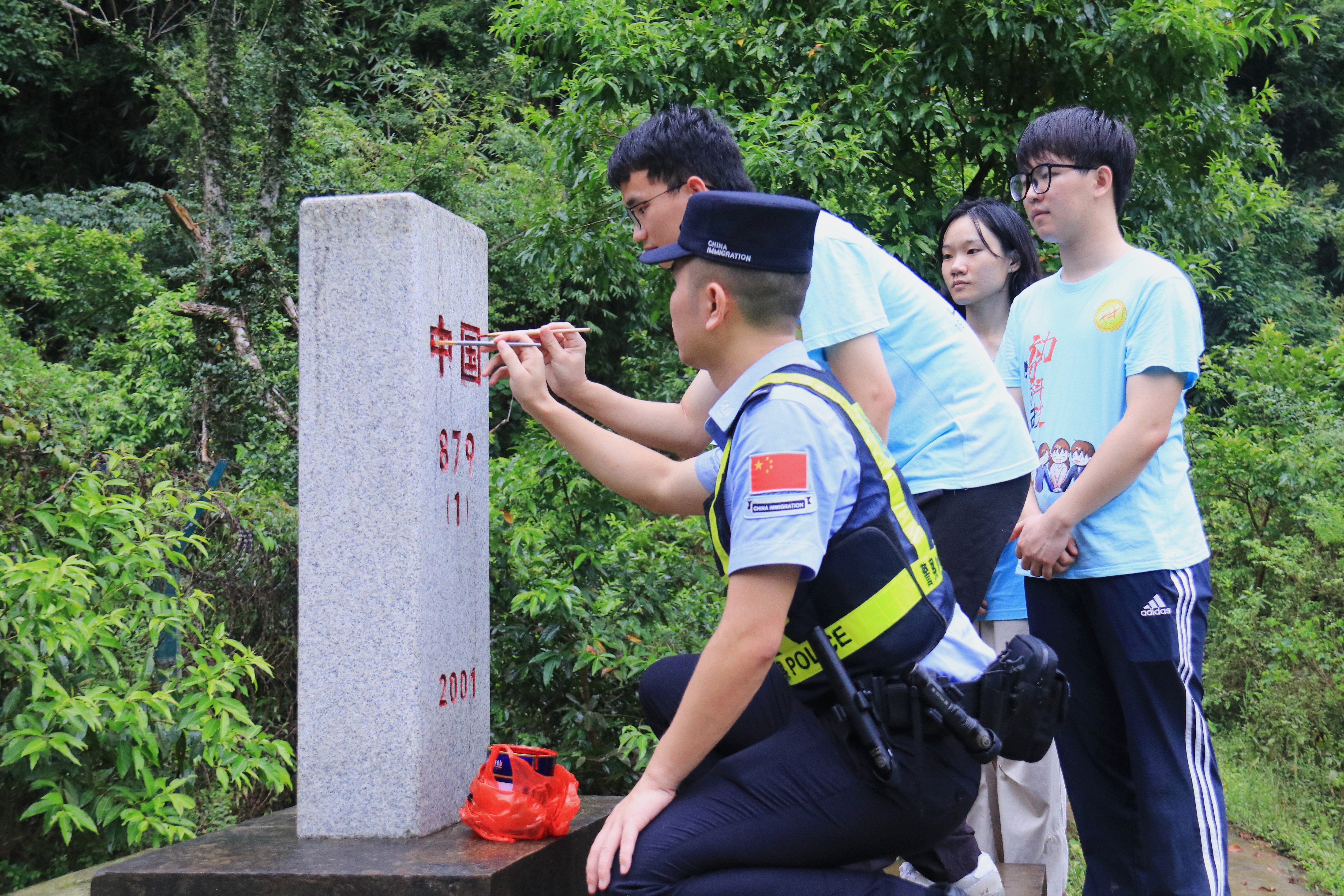“我们将民族团结进步与边境社会治理有机融合,发动村干部、网格员、志愿者组建‘护村队’,实现警民携手共创平安边境。”金龙边境派出所民警说道。在蒙蒙细雨中,实践团师生整齐列队,跟随民警开展巡边体验,并为879号界碑描红,聆听守边固边兴边故事。