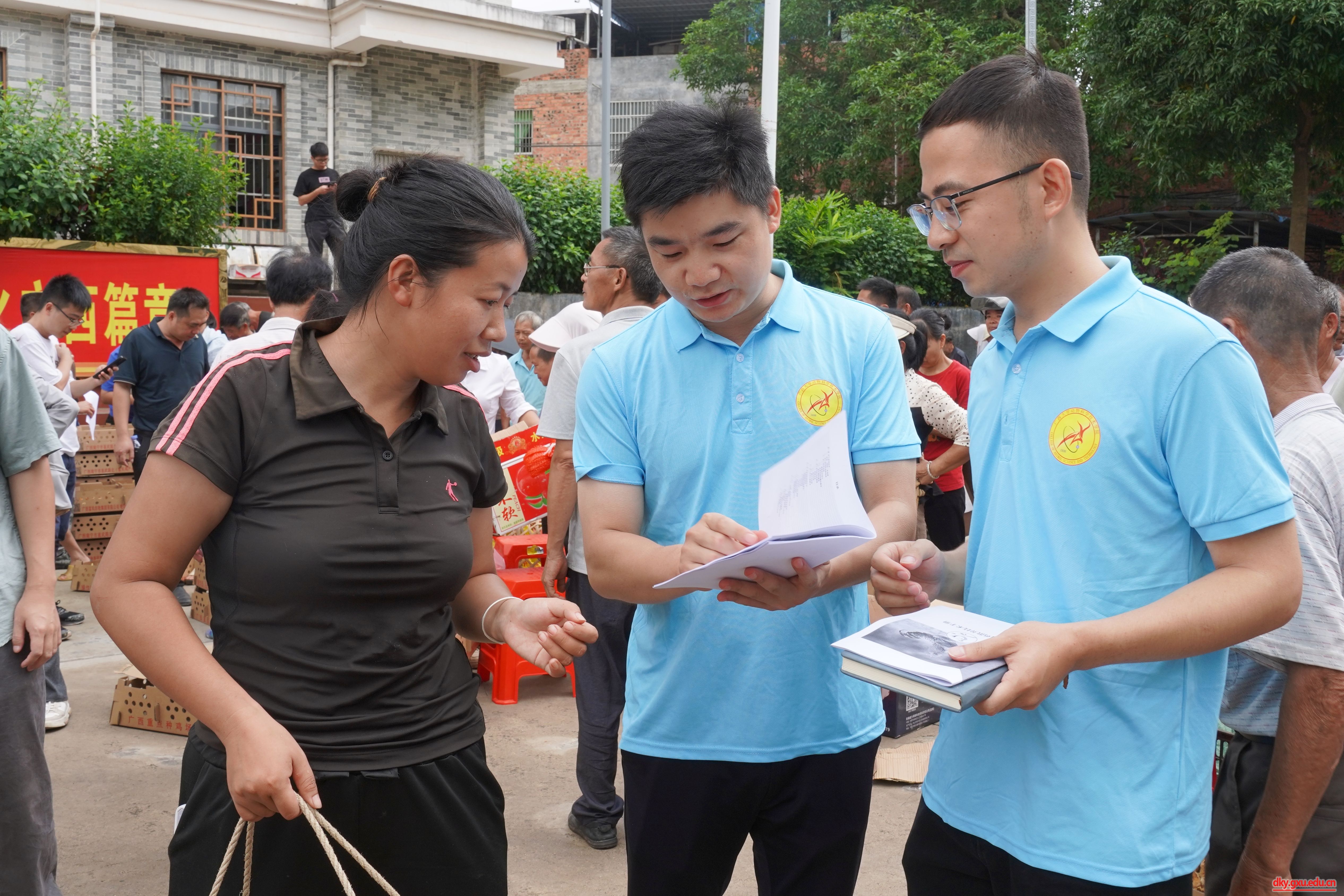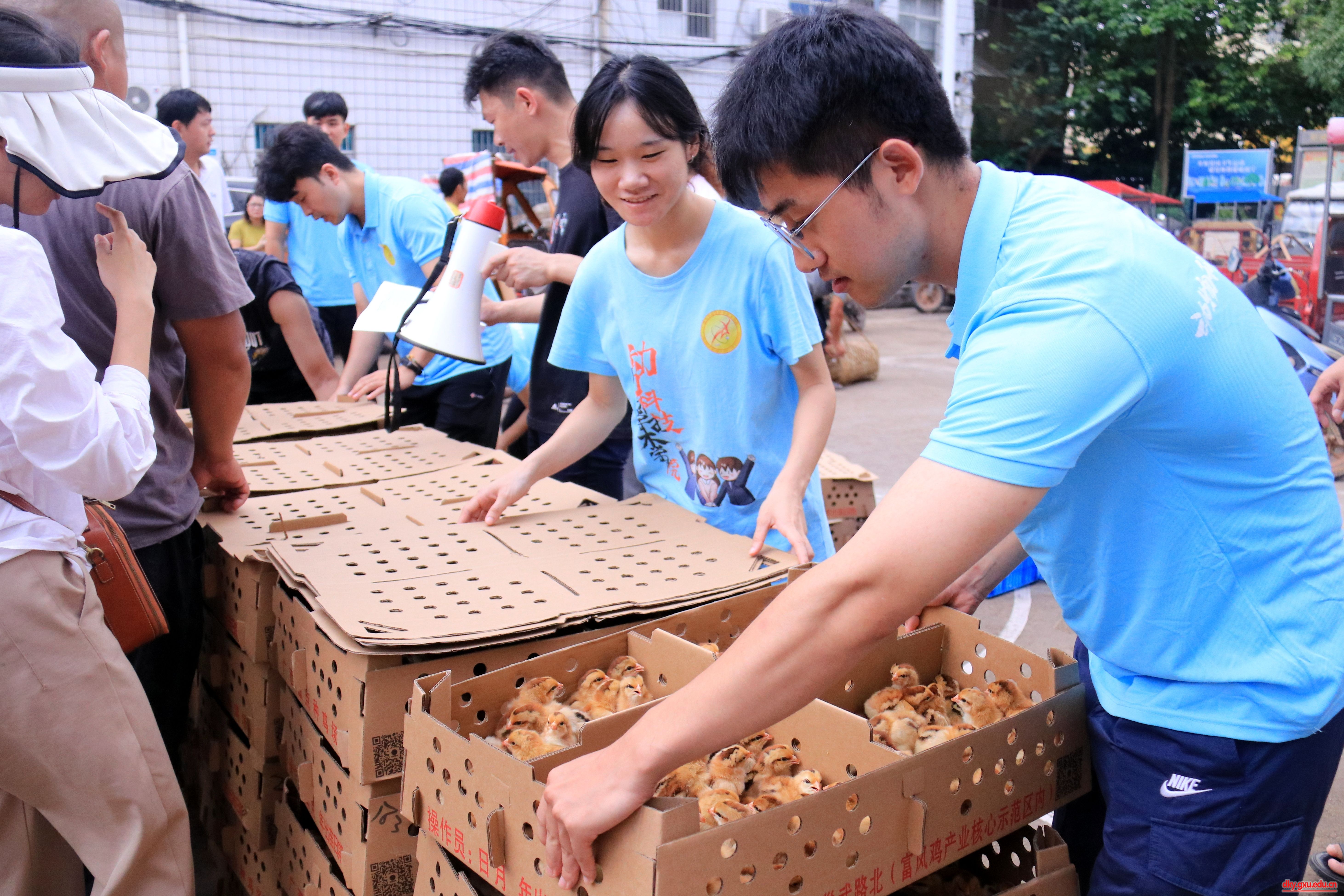 实践团师生来到了邕宁区那楼镇,协助企业向当地农户发放万余只鸡苗。在活动现场,成员们化身“科技顾问”,耐心细致地向农户讲解科学养殖的知识和技术,从饲养管理、疾病防控到环境优化,每一个环节都进行了详细的说明和示范。农户们纷纷表示,这些实用的养殖技术将帮助他们提高养殖效益,增加经济收入,希望以后可以定期接受培训。