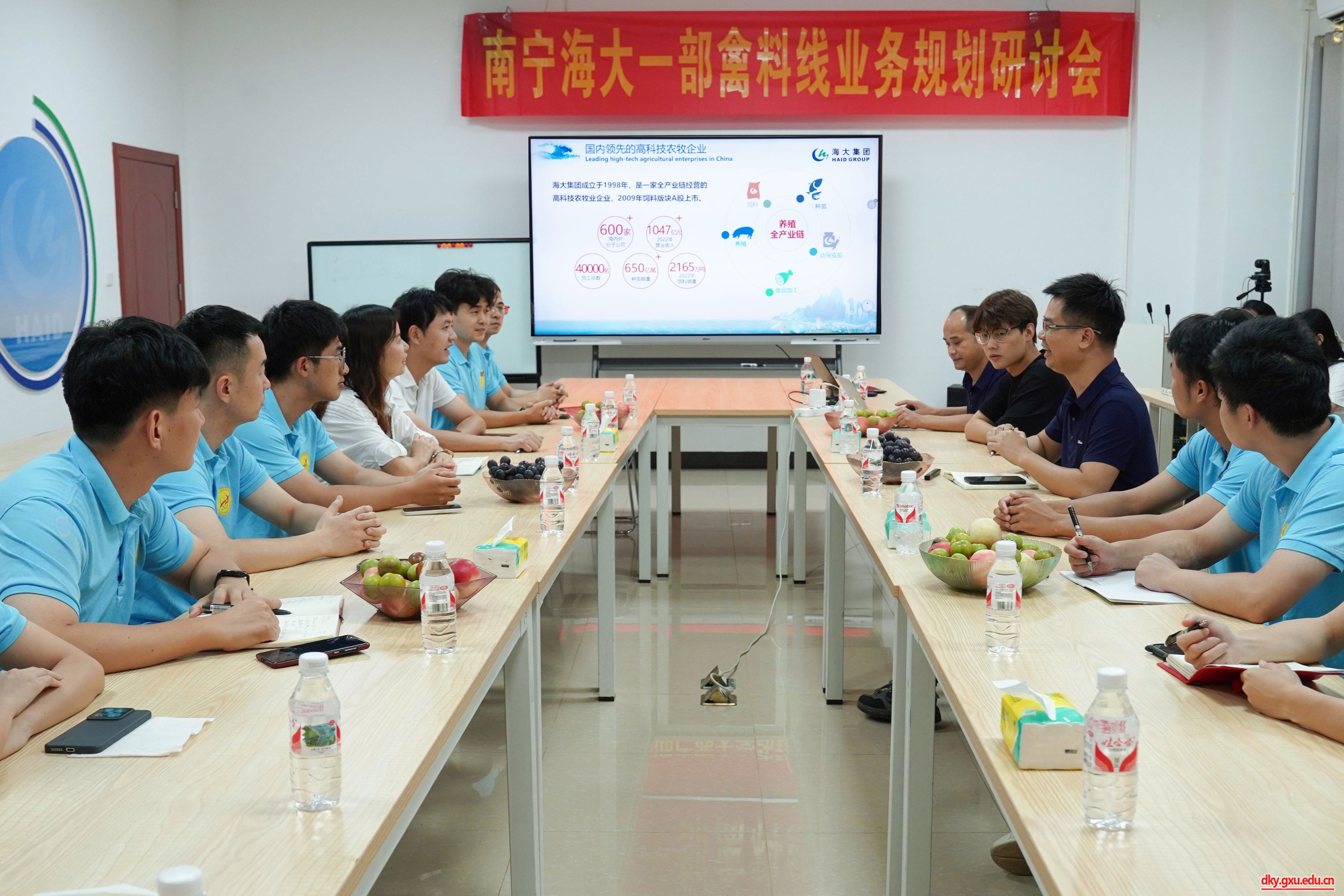 实践团师生走进了南宁海大生物科技有限公司,同负责同志、员工代表进行座谈交流,全面了解了其发展历程、业务板块、技术研发等情况,并就人才培养、产教融合、实习实践等方面进行热烈讨论。