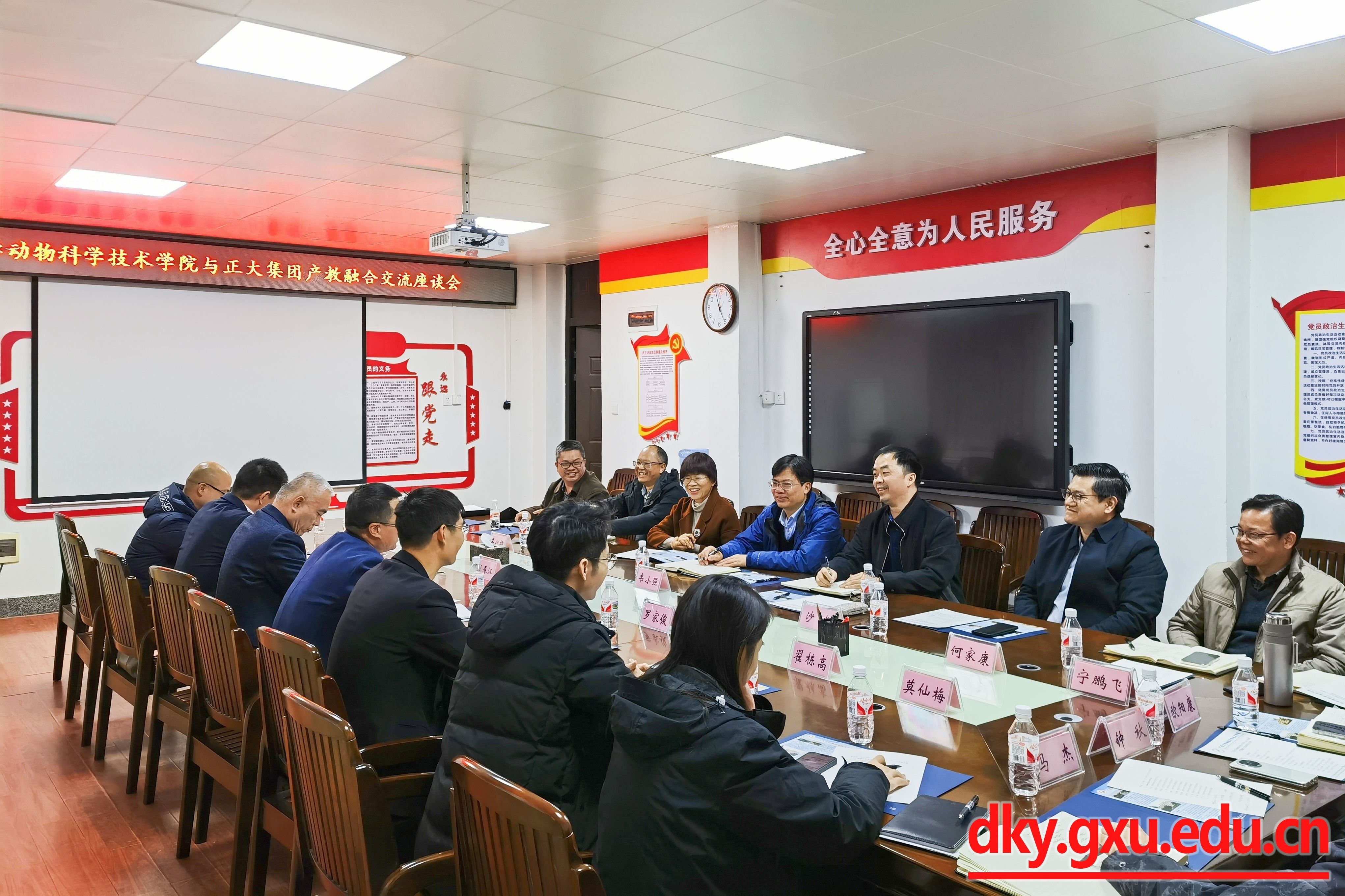 为进一步加强专业团队建设,提升人才培养质量,推动校企深度合作,12月16日下午,beat365与正大集团在公司302会议室召开产教融合交流座谈会。动物科学技术公司党委书记韦小强,经理陆阳清,原党委书记顾慕娴,党委副书记沙建,副经理何家康、韦祖樟、宁鹏飞,团委副书记刘诚,专任教师黄伟坚、欧阳康、钟秋、马杰,正大集团广西区总裁赖平生,广西区养殖事业副总裁王春江,广西正大畜禽有限公司总经理罗家俊,正大饲料(广西)南宁分公司总经理马春庆,正大集团华南区人力资源总监翟栋高,广西区兽医总监赵日浪,正大饲料(广西)南宁分公司人力资源主管莫仙梅参加此次会议。