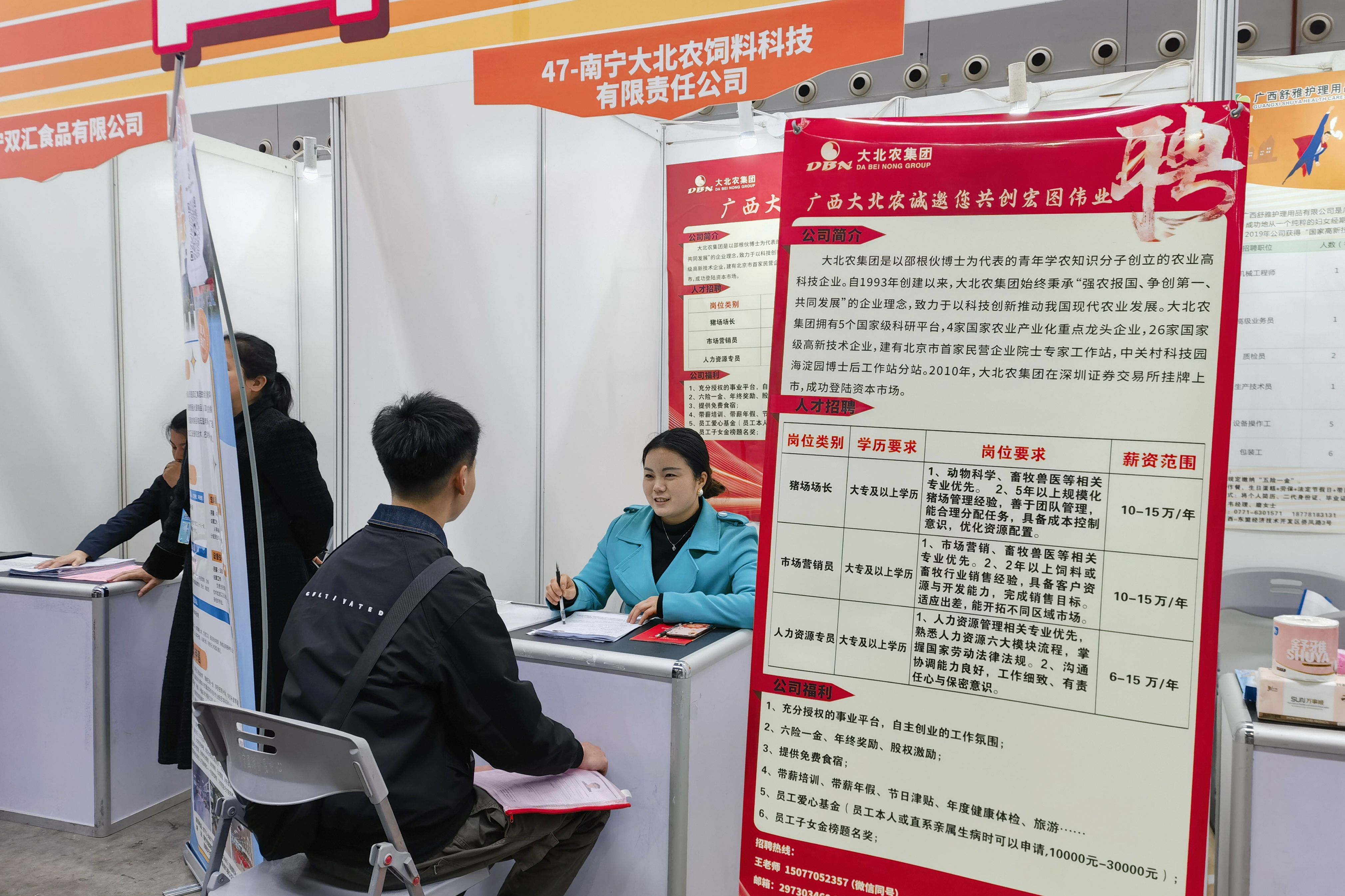 据悉,本次人才交流大会设置6个展厅1200余个展位,共有广西农垦、正大集团、力源集团、大北农集团、瑞鹏宠物医疗等来自全国各地的620家用人单位,提供生产管理、技术服务、产品研发、市场营销等2.1万个招聘岗位。
