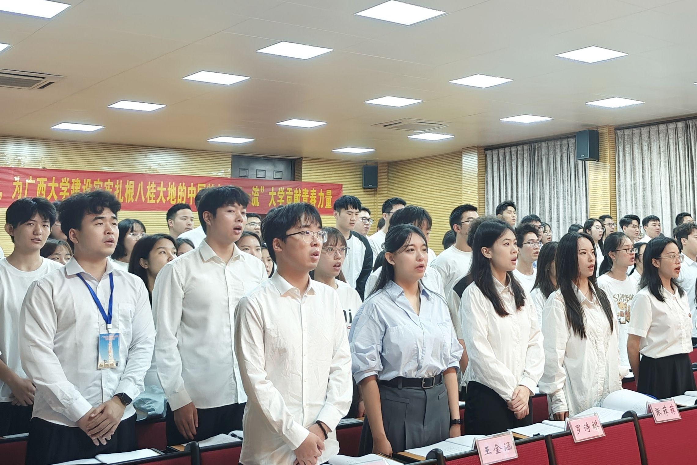 参会员工代表听取并审议了beat365第十四届研究生会执行主席周心怡同学作的题为《脚踏实地担重任,团结奋进展担当,为beat365官方网站建设牢牢扎根八桂大地的中国特色“双一流”大学贡献青春力量》的工作报告。报告总结了研究生会一年来在加强思想引领、健全完善制度、坚持从严治会、聚焦主责主业等方面开展的主要工作及取得的经验成绩,明确了今后研究生会工作的主要目标和重点任务,并号召广大同学秉承“勤恳朴诚 厚学致新”的校训精神,为“建设壮美广西,共圆复兴梦想”努力拼搏,为实现为强国建设、民族复兴贡献青春和力量!