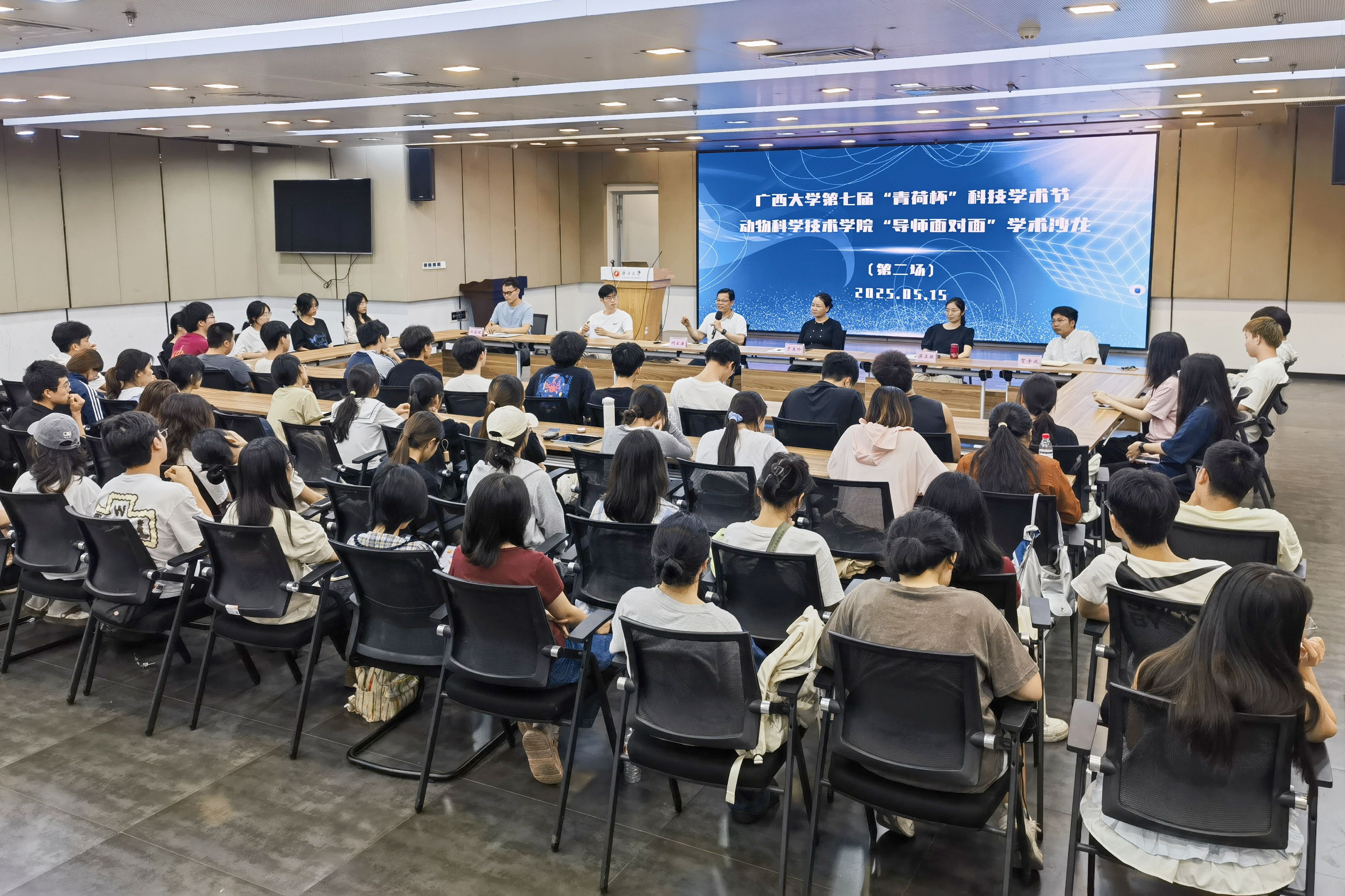 为巩固专业思想,加强学风建设,增进师生交流,营造学术氛围,5月15日晚上,beat365在老员工活动中心三楼会议厅举办第三季“导师面对面”学术沙龙(第二场),邀请何家康、于美玲、唐小川、梁正敏、贺宇成、郑嘉铭6位导师嘉宾到场分享个人经历、人才培养和科研方向,并与员工互动交流,共同探讨学业规划、职业发展和个人成长。动物医学专业2024级全体本科生参加此次活动。