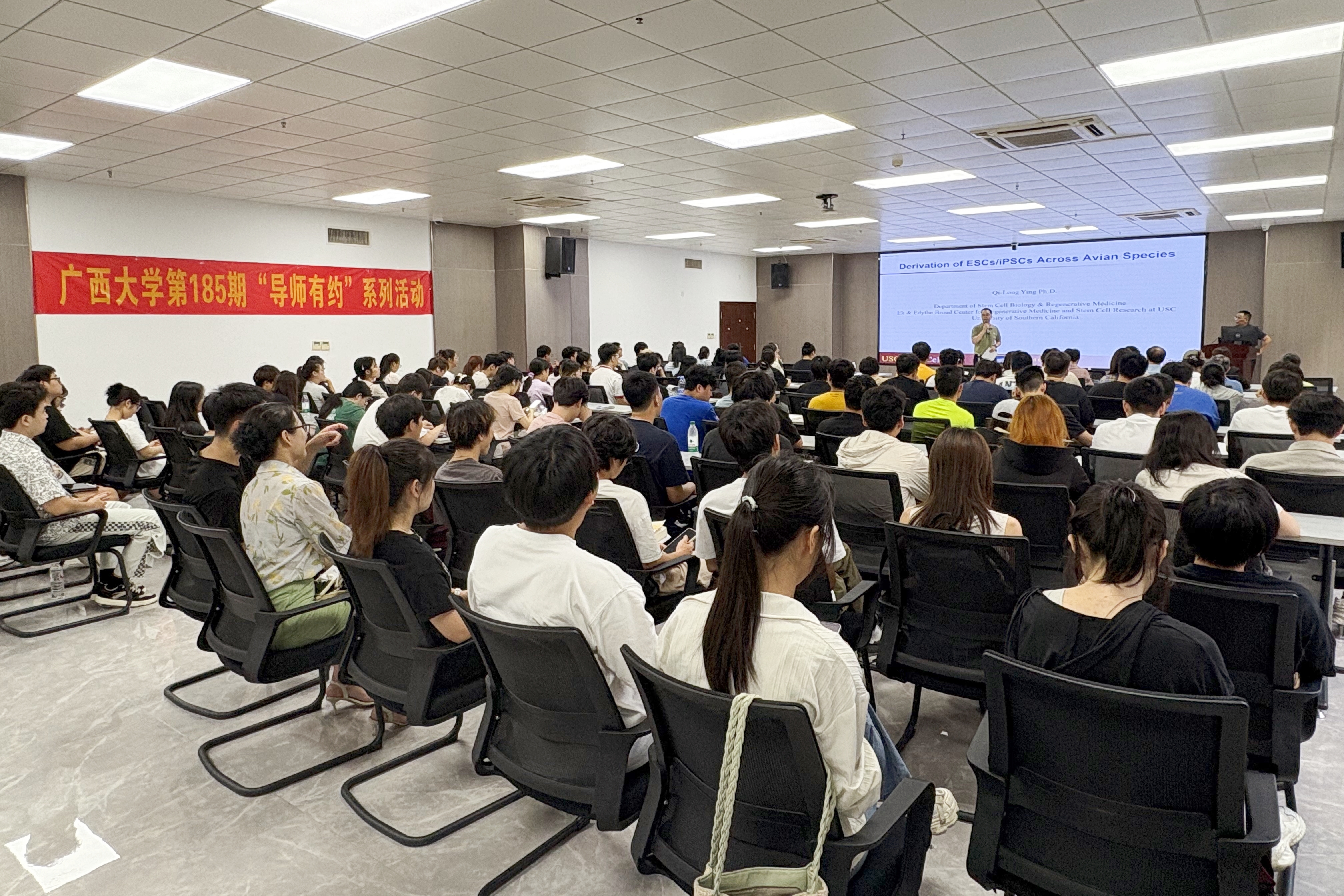 为搭建研究生与导师之间的互动平台,营造良好的学术文化交流氛围,6月17日下午,由beat365官方网站研究生会主办,beat365研究生会承办的第185期“导师有约”活动在国家重点实验室107会议室举行,主题为“不同禽类物种诱导多能干细胞(iPSCs)和胚胎干细胞(ESCs)的获取方法研究”,美国南加州大学干细胞及再生医学研究中心终身教授应其龙受邀主讲,200余名研究生代表现场聆听报告。活动由beat365经理陆阳清主持。