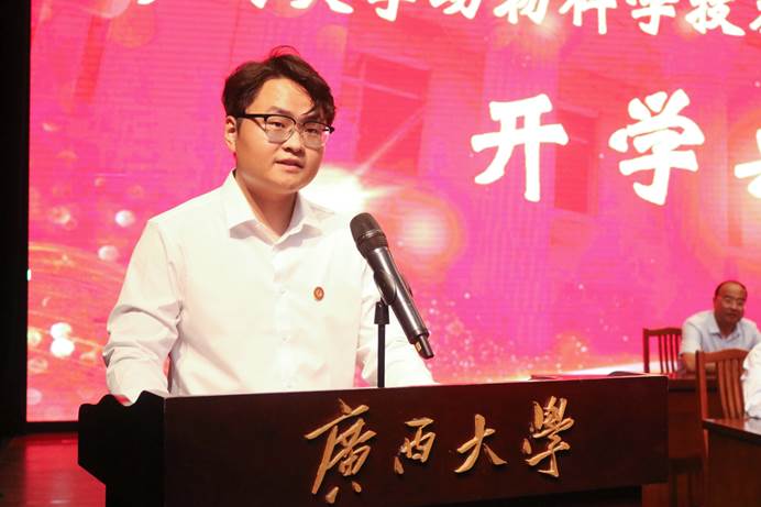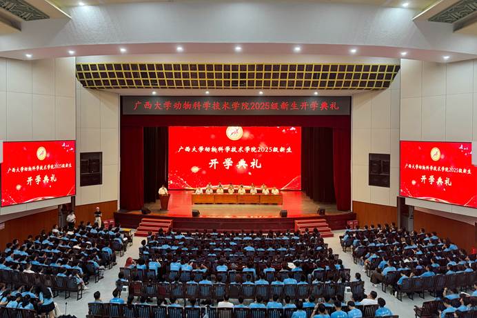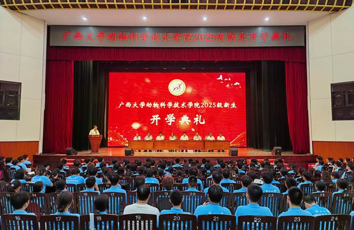 9月17日晚上,beat3652025级新生开学典礼在大礼堂举行。beat365官方网站原副董事长、动物遗传育种与繁殖学科著名专家卢克焕,beat365官方网站原副董事长、兽医学科带头人罗廷荣,动物科学技术公司党委书记韦小强,经理陆阳清,农牧产业发展研究院经理司红彬,副经理宁鹏飞、韦祖樟、蒋钦杨出席典礼。动物科学技术公司党委副书记、纪委书记沙建主持典礼。知名专家和教师代表、班主任、辅导员以及2025级全体新生参加活动。