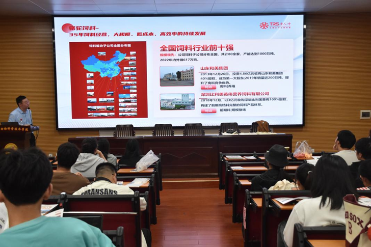 作为公司拓宽就业渠道、提升就业质量的重要举措,本次专场宣讲会精准对接农牧行业优质企业资源,为学子们搭建了与行业龙头企业直接对话的平台。宣讲会伊始,唐人神集团负责人以企业发展历程为切入点,系统介绍了集团在农牧产业的核心业务布局、行业地位及发展前景,让在场学子对企业的整体实力有了全面认知。负责人重点阐释了集团“爱、信任、承诺”的核心价值观,通过企业社会责任实践案例展现了企业文化内涵,引发在场学子的强烈共鸣,赢得一致好评。