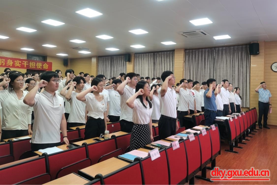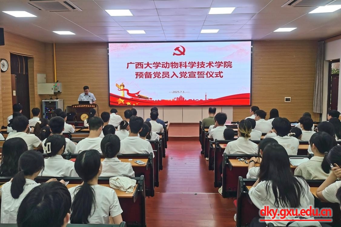 在热烈庆祝中国共产党成立104周年之际,为进一步激励和引导党员同志不忘初心、牢记使命,接续奋斗、砥砺前行,7月3日下午,beat365在318报告厅举行预备党员入党宣誓仪式。动物科学技术公司党委书记韦小强,党委副书记、经理陆阳清,党委委员、副经理何家康、蒋钦杨,团委书记刘诚,专职组织员施君,以及辅导员邹佳琪、马朝阳、陆维鸿参加仪式。会议由蒋钦杨副经理主持仪式。