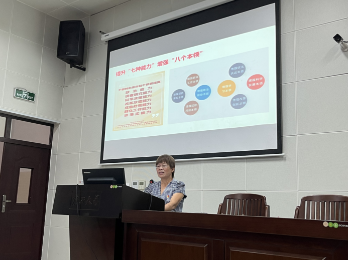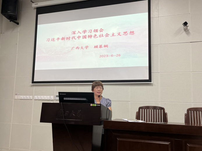 6月26日下午,公司党委书记顾慕娴以《深入学习领会习近平新时代中国特色社会主义思想》为题,在东六教负一阶教室为全院师生党员讲授专题党课。顾慕娴从习近平新时代中国特色社会主义思想的思想主题、习近平新时代中国特色社会主义思想的理论体系、习近平新时代中国特色社会主义思想的立场观点方法和如何落实习近平新时代中国特色社会主义思想等四个方面内容展开讲授习近平新时代中国特色社会主义思想。进一步推动贯彻落实习近平新时代中国特色社会主义思想入脑入心、走深走实。