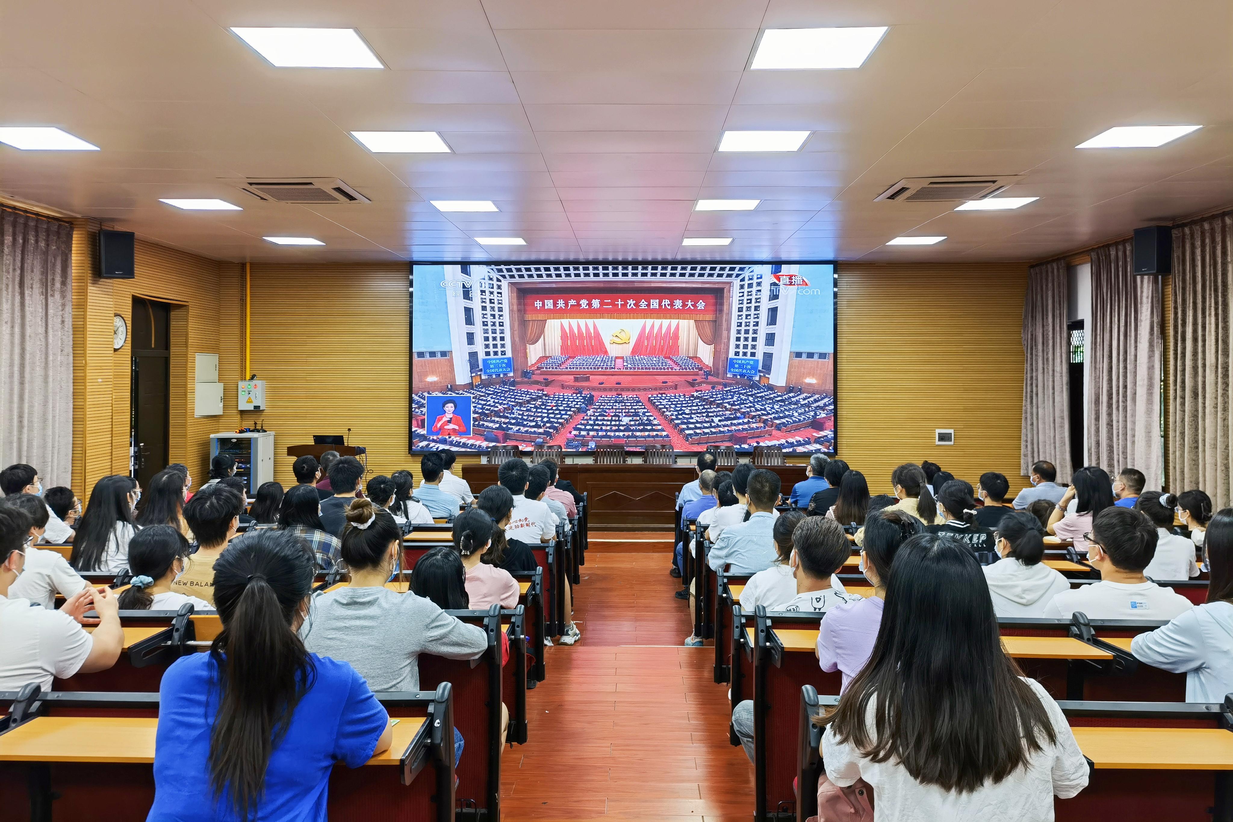 10月16日上午,举世瞩目的中国共产党第二十次全国代表大会在人民大会堂隆重开幕。beat365组织广大党员干部、师生员工收听收看大会开幕盛况,认真聆听习近平总书记所作题为《高举中国特色社会主义伟大旗帜 为全面建设社会主义现代化国家而团结奋斗》的报告。