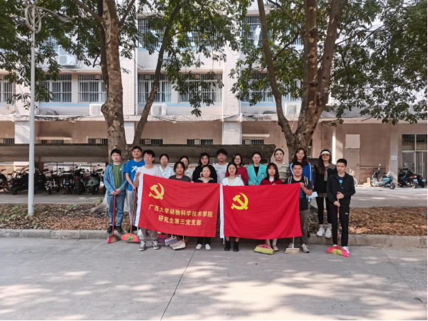 2023年3月17日下午,在支部书记李一星同志带领下,各党员同志带上打扫工具来到繁殖所前,清除绿化带杂草、打扫路面垃圾。有的拣拾地上的白色塑料袋,有的用扫帚和簸箕清理垃圾,大家不怕脏、不怕累,充满朝气和热情,充分发挥了党员的先锋带头作用。此外,支部书记李一星同志又带领大家到环境楼前整理乱摆乱放的自行车等,将单车摆放整齐,让车停放得标准、规范。经过大家的共同努力,环境面貌焕然一新。