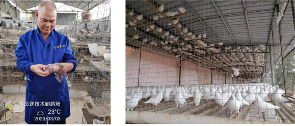 3月3日,广西肉鸽行业协会优秀党员、永东生物总经理王弟烈送技术到鸽场。