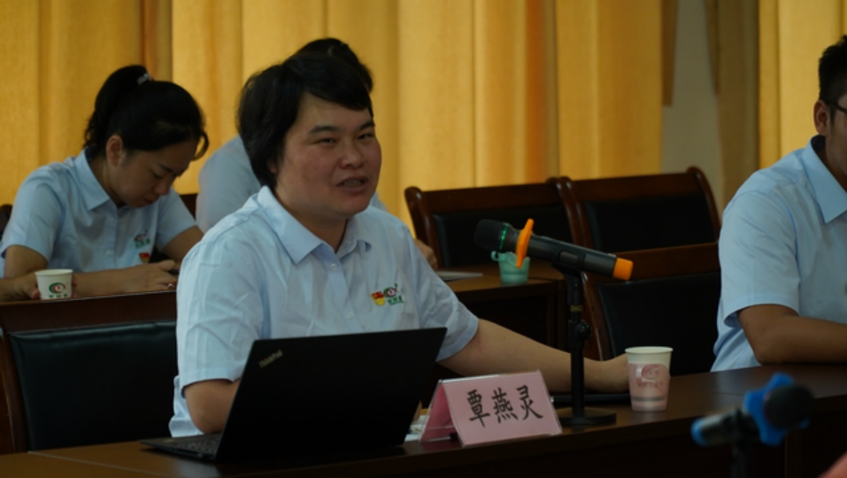 广西农垦永新畜牧集团有限公司良圻原种猪场党支部书记覃燕灵发言。