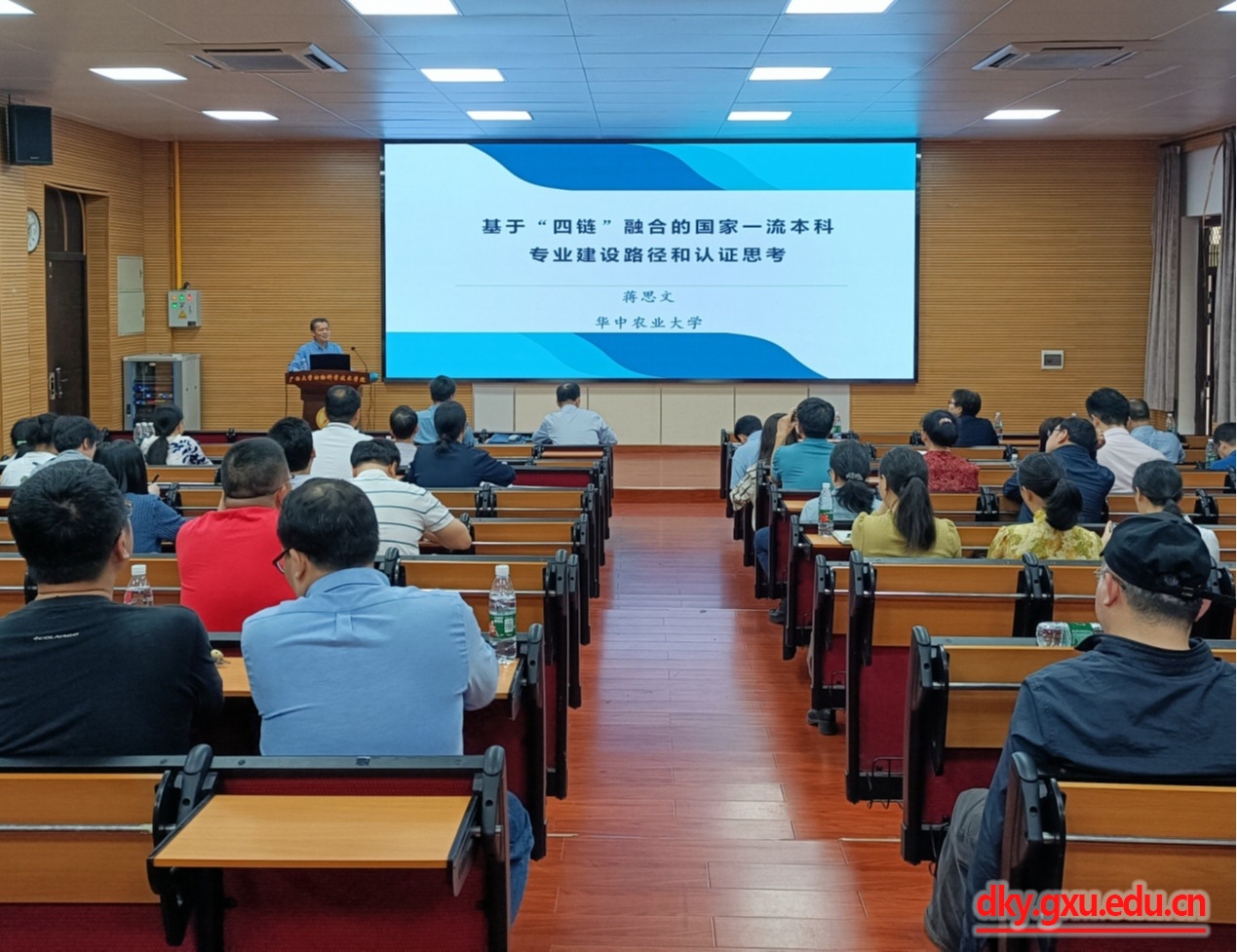 第二环节为一流专业建设专题报告会,会议在beat365318会议室召开,由蒋思文教授做专题报告,与会人员包括beat365官方网站教务处领导谢健副处长、beat365经理陆阳清、蒋钦杨副经理、其它公司相关负责人、beat365专任教师、实验教师等人员。蒋思文教授做了题为《基于“四链”融合的国家一流本科专业建设路径和认证思考》的专题报告,重点就农科国家一流专业建设方法、发展形势、认证情况进行了介绍,并对于与会人员的问题进行了详细解答。