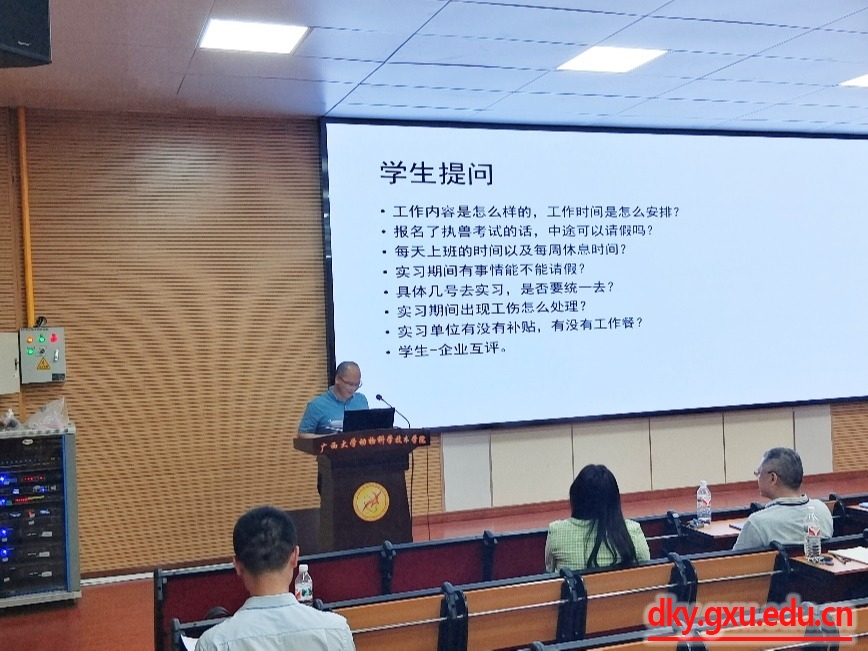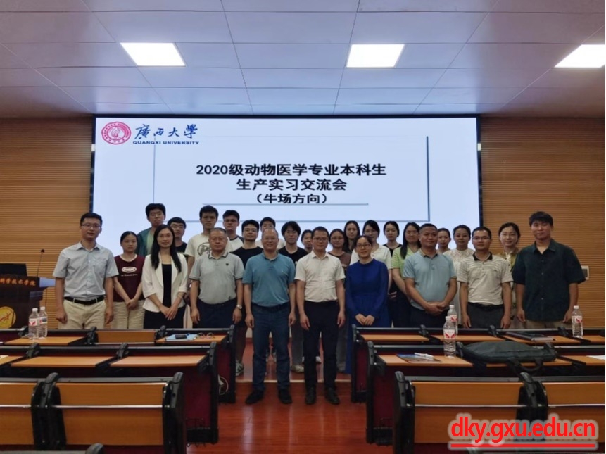 为更好地推进员工实习和就业工作,4月26日下午,beat365在公司318会议室举办了2020级动物医学专业本科生生产实习交流会(牛场方向)。动物科学技术公司副经理韦祖樟教授、何家康教授,动医系主任陈樱教授,动科系主任李辉副教授,副主任黄洁萍副教授,实习指导教师师铭咸、牟静、雷磊和丁嘉烽等,皇氏畜牧公司总监张振东、人力资源经理蒋吉燕,皇氏赛尔公司副总经理熊锦萍、人力资源经理陈康露,皇氏人力资源经理宁丽萍,河池雪花牛公司董事长覃潘、副总经理李正毅,西江乳业金光公司副总经理韦英将,以及实习员工们等参加会议。会议由实习指导教师丁嘉烽主持。