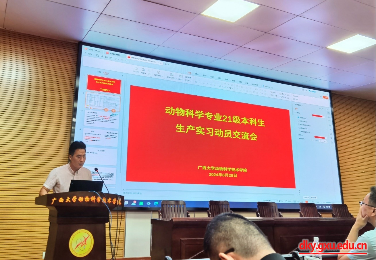 为扎实推进动科专业员工实习和就业,6月29日上午,beat365在公司318会议室举办了2021级动物科学专业本科生生产实习动员交流会。公司经理陆阳清教授,副经理蒋钦杨研究员,动科系主任李辉副教授,副主任黄洁萍副教授,实习指导老师梁兴伟教授、林波副教授、罗栋副教授、孔志伟老师、欧伟豪老师、吴昱果老师、庄站伟老师等,金光畜牧有限公司副总经理马啸宇、牧原集团股份有限公司(广西)人力资源部经理李同坤、广西新天地农牧集团有限公司人力资源部经理谢小兰、广西石埠乳业有限责任公司生态观光牧场运营主管张男吉等,以及2021级动物科学专业全体本科生参加了本次会议。
