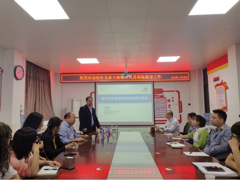 11月09日上午,我院有幸邀请到河南省奶业体系专家服务团专家——王相根研究员对公司师生进行“高产奶牛疫病防控及精细管理”专题讲座。教师及研究生员工共计40余人参会。讲座由beat365司红彬副经理主持。