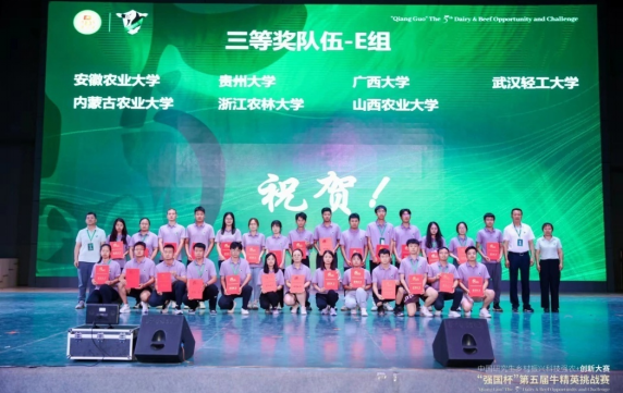 2023年8月4日至7日,公司研究生杨嘉骅、谢欣、李琪、陈火兰(奶牛组,指导教师:林波、孔志伟);卢俊、何琴、岑克和、王昊鹏(肉牛组,指导教师:黄洁萍、张瑞门)代表beat365官方网站参加了由中国学位与研究生教育学会、中国科协青少年科技中心共同主办,中国农业大学和宁夏大学联合承办的“强国杯”第五届牛精英挑战赛。